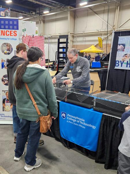 Faculty, staff and students began showcasing Penn College’s empowering opportunities on Saturday, with the baking and culinary program taking the Culinary Connection stage and additional academic programs providing activities in the Penn College booth: laser engraving with the automated machining and manufacturing department on Saturday; physics demonstrations on Sunday; a horticultural Q&A and plant giveaway on Monday; and a laparoscopic surgery simulator on Tuesday.