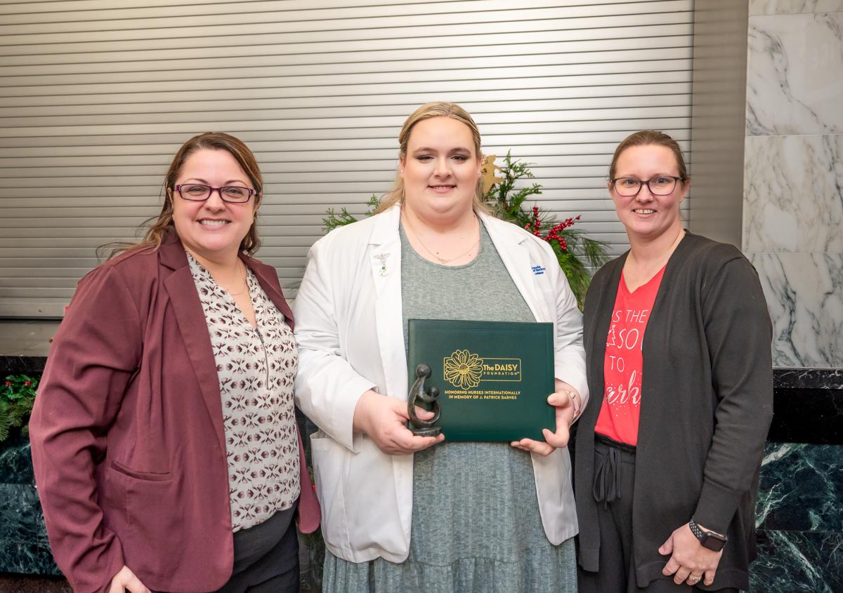 December Pennsylvania College of Technology graduate Elexus J. Dunkleberger (center), of Hughesville, was recently presented with a DAISY Award for Extraordinary Nursing Students. She is joined by Kelly T. Bidlespacher, director of nursing: bachelor’s and graduate degrees, and Amber L. Morgan, director of nursing: associate degrees.