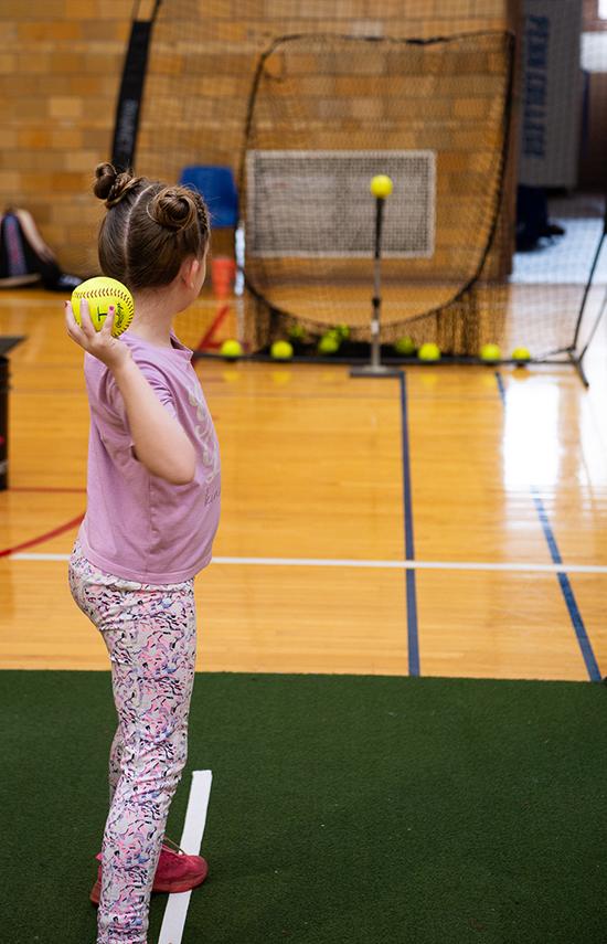 Celebrating National Girls & Women in Sports Day in Penn College's Bardo Gym are Wildcat softball player Hannah J. Scalia (second from right) and three of the youngsters who signed up for the college's 10th NGWSD clinic. Scalia is from Huntingdon.