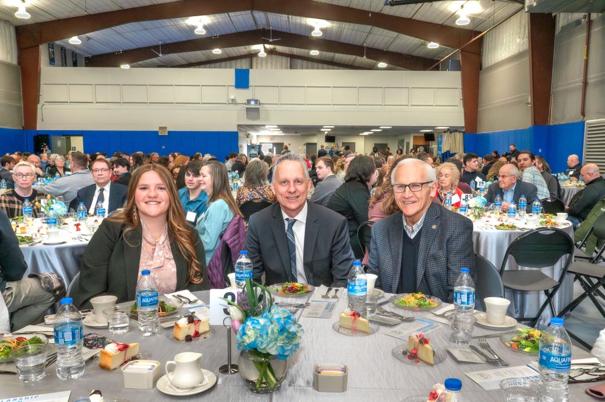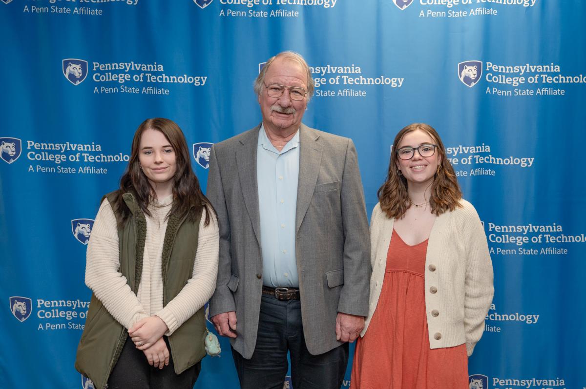 Morgan T. Bartholomew (left), student speaker for the 2025 Scholarship Luncheon, is joined by Penn College President Michael J. Reed (center) and Sen. Gene Yaw, chair of the college's Board of Directors.