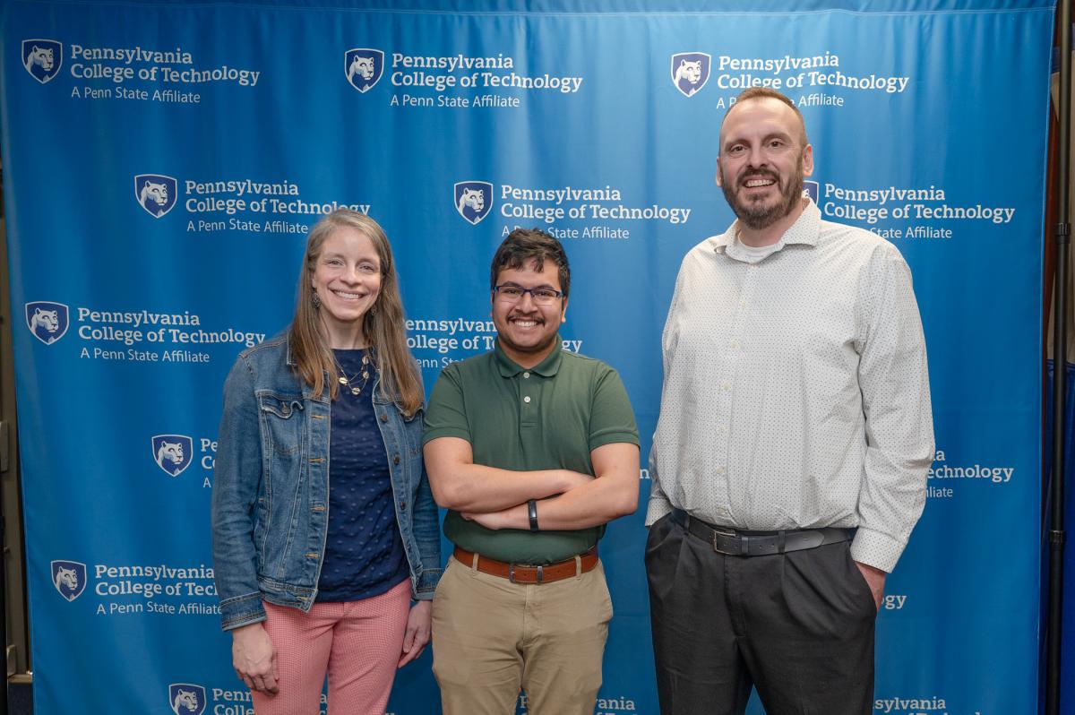 Diwash Dahal (center), network administration & engineering technology, joins the namesakes of the scholarship he receives: Dr. Richard C. and Mrs. Rebecca A. Hornberger Family IT Scholarship. Dahal is also recipient of the Alumni Tomorrow Makers Scholarship.