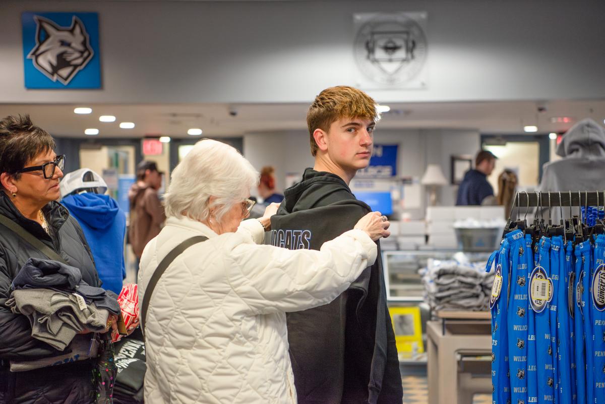 Grandma knows best! Always a fun stop: shopping for merch in the College Store.