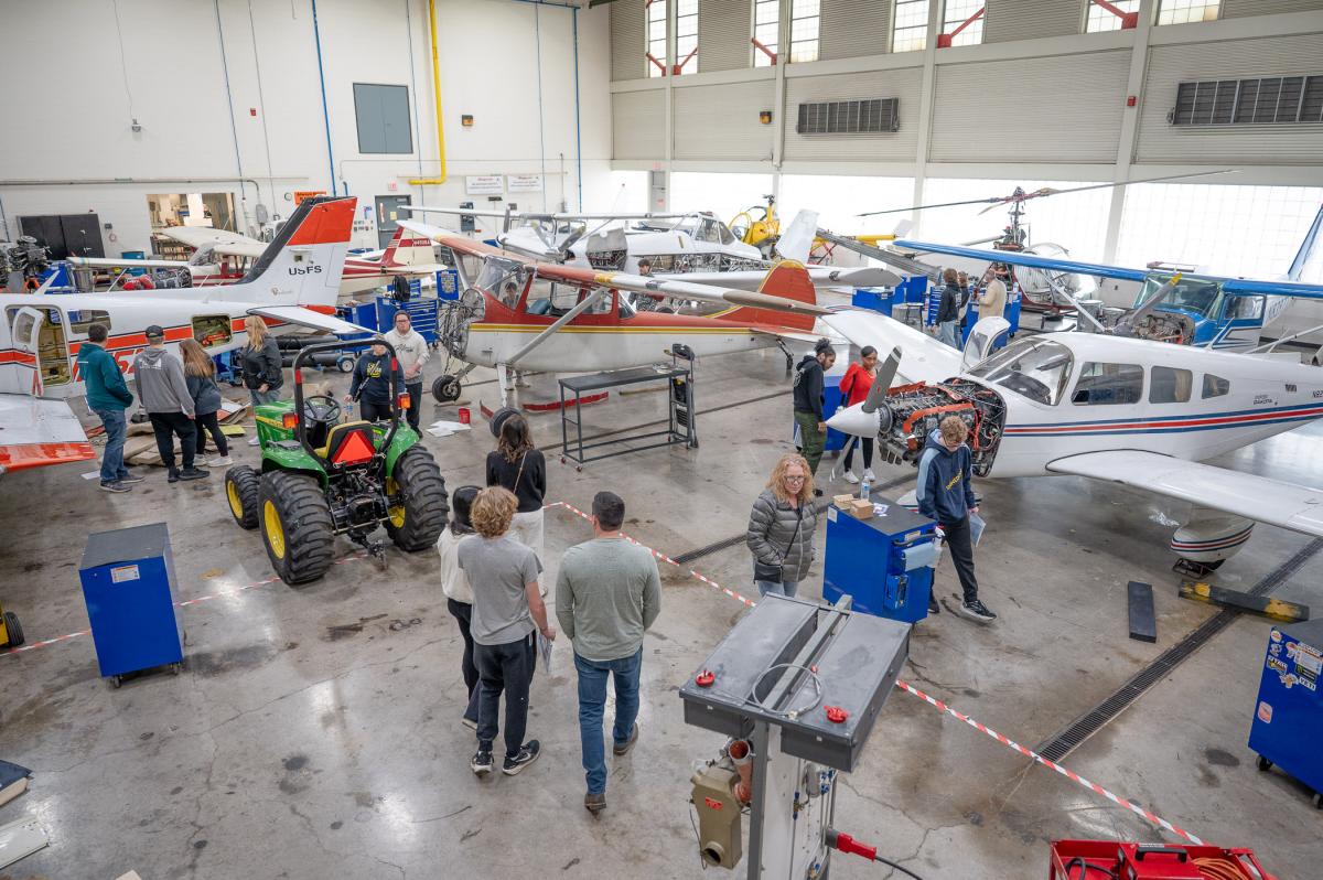 ... and out on the tarmac to explore the college's fleet of aircraft — essential tools for the aviation maintenance major.