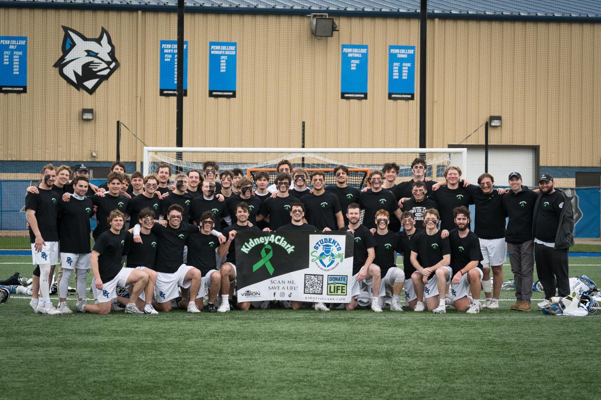 It takes a team effort! Penn College lacrosse players are among those joining forces to boost awareness of a fellow student’s father’s search for a kidney donor. The organ donor campaign, known as “Kidney 4 Clark,” is for Clark Pitura, a New York City police detective and father of Dylan Clark Pitura, a student enrolled in heavy construction equipment technology: technician emphasis. The Pituras reside in Brewster, New York.