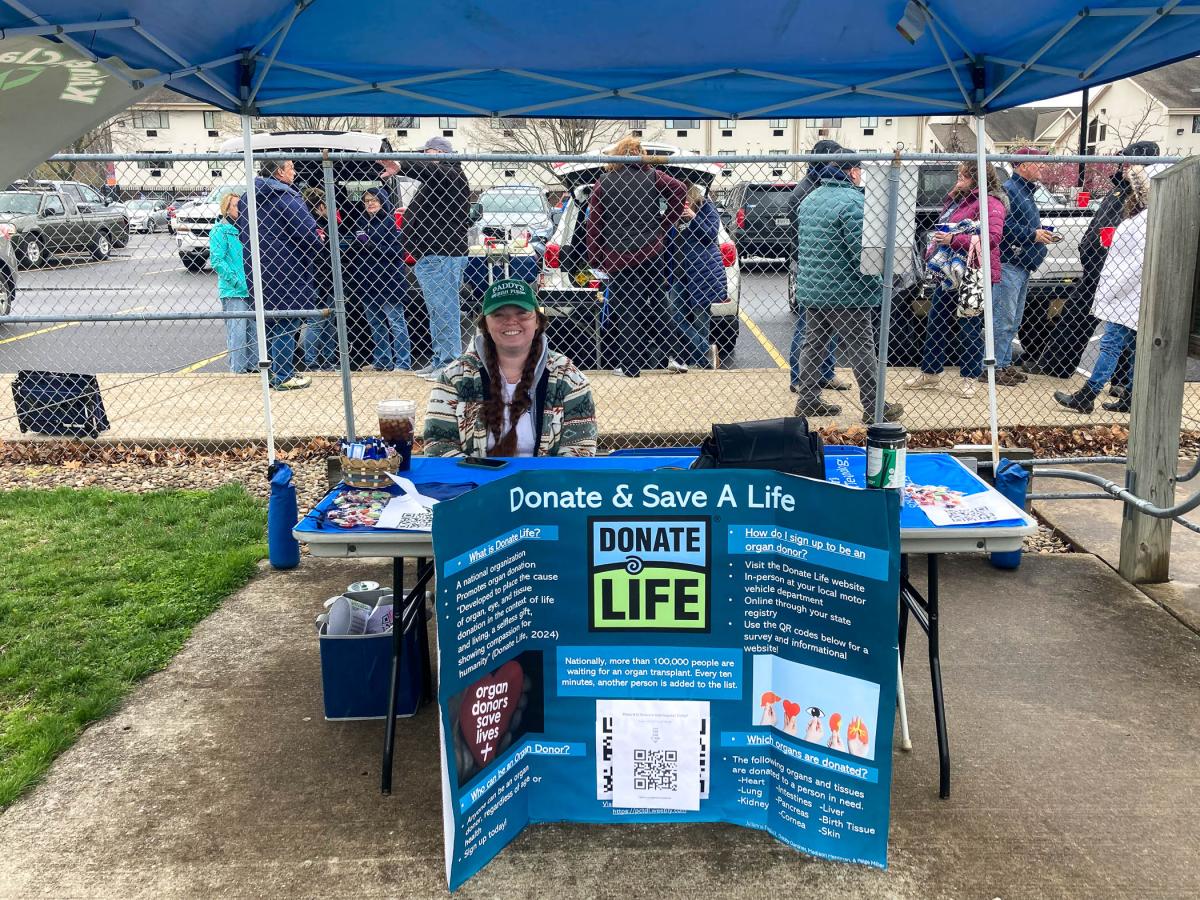 Tori G. Baskin, a nursing student from Muncy, is among those staffing an organ donor information table at the lacrosse game. She and others, including the college's Wellness Committee, are engaged in the “Gift of Life College Challenge."