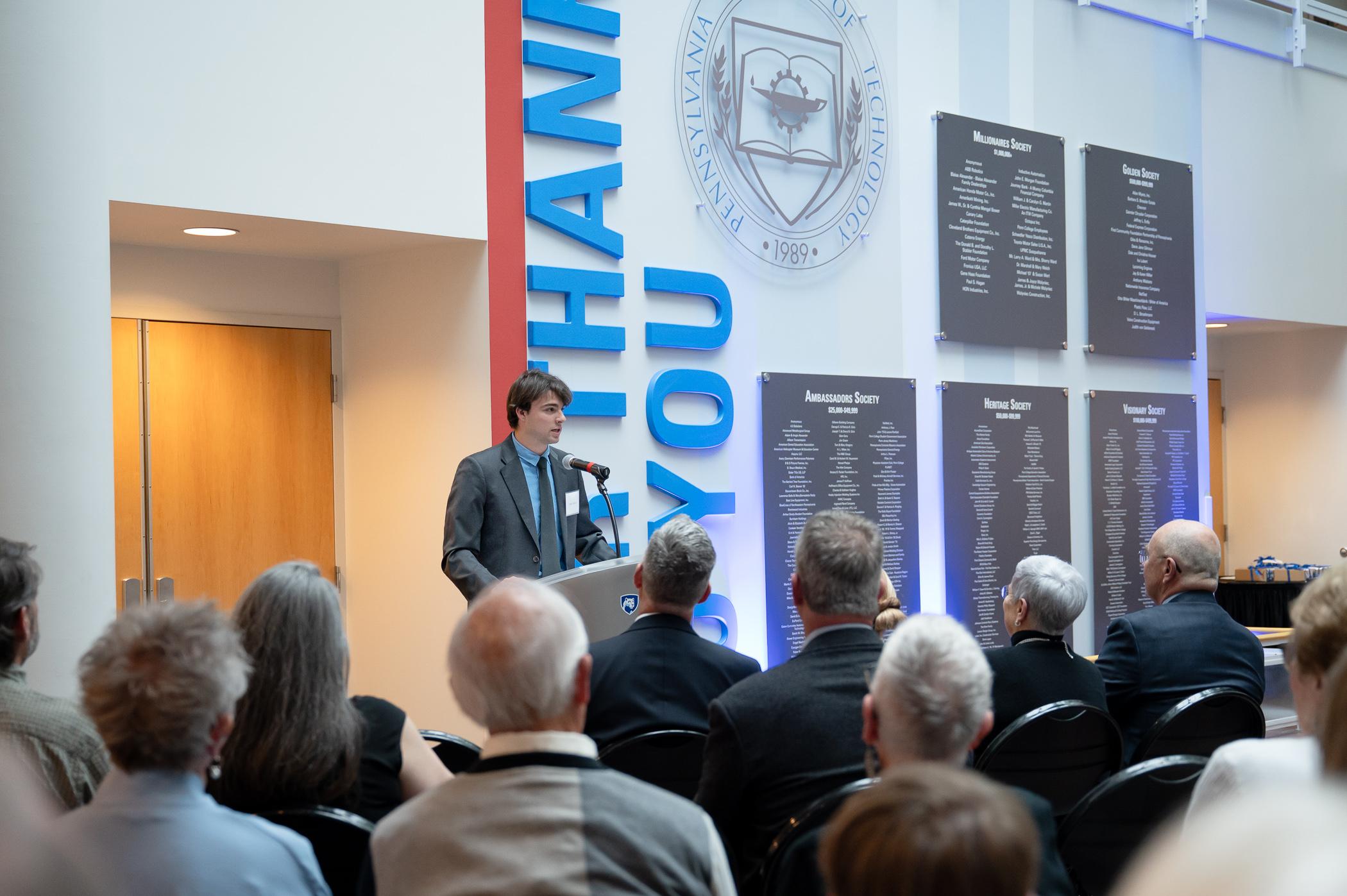 In closing, the student speaker said, “All of you here tonight have created tremendous opportunities for Penn College students. Your contributions have made not only my dreams come true, but the dreams of every student who has come here. … On behalf of the students here at Penn College, I thank you.”