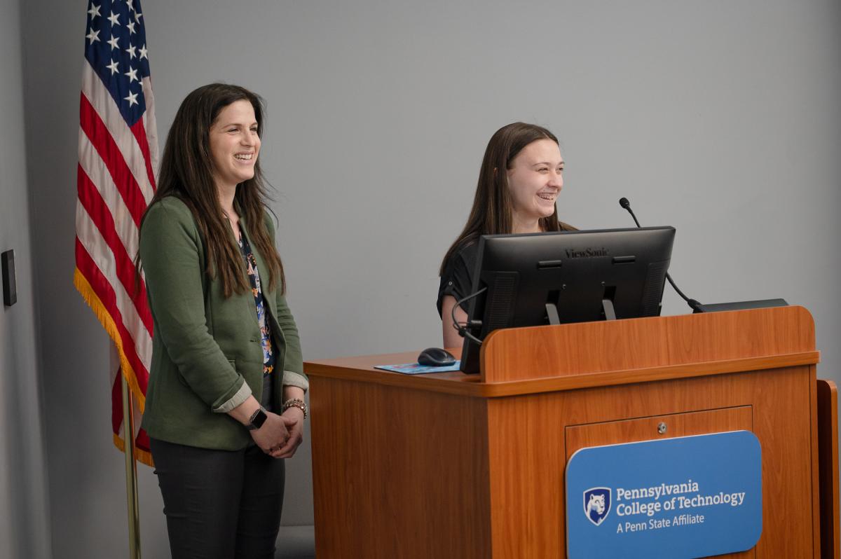 The program then shifted to showcase the dynamic present and future of Penn College, with presentations by faculty and students from majors representing the college's three innovative schools: emergency management & homeland security from the School of Business, Arts & Sciences; physical therapist assistant from the School of Nursing & Health Sciences; and automated manufacturing from the School of Engineering Technologies.