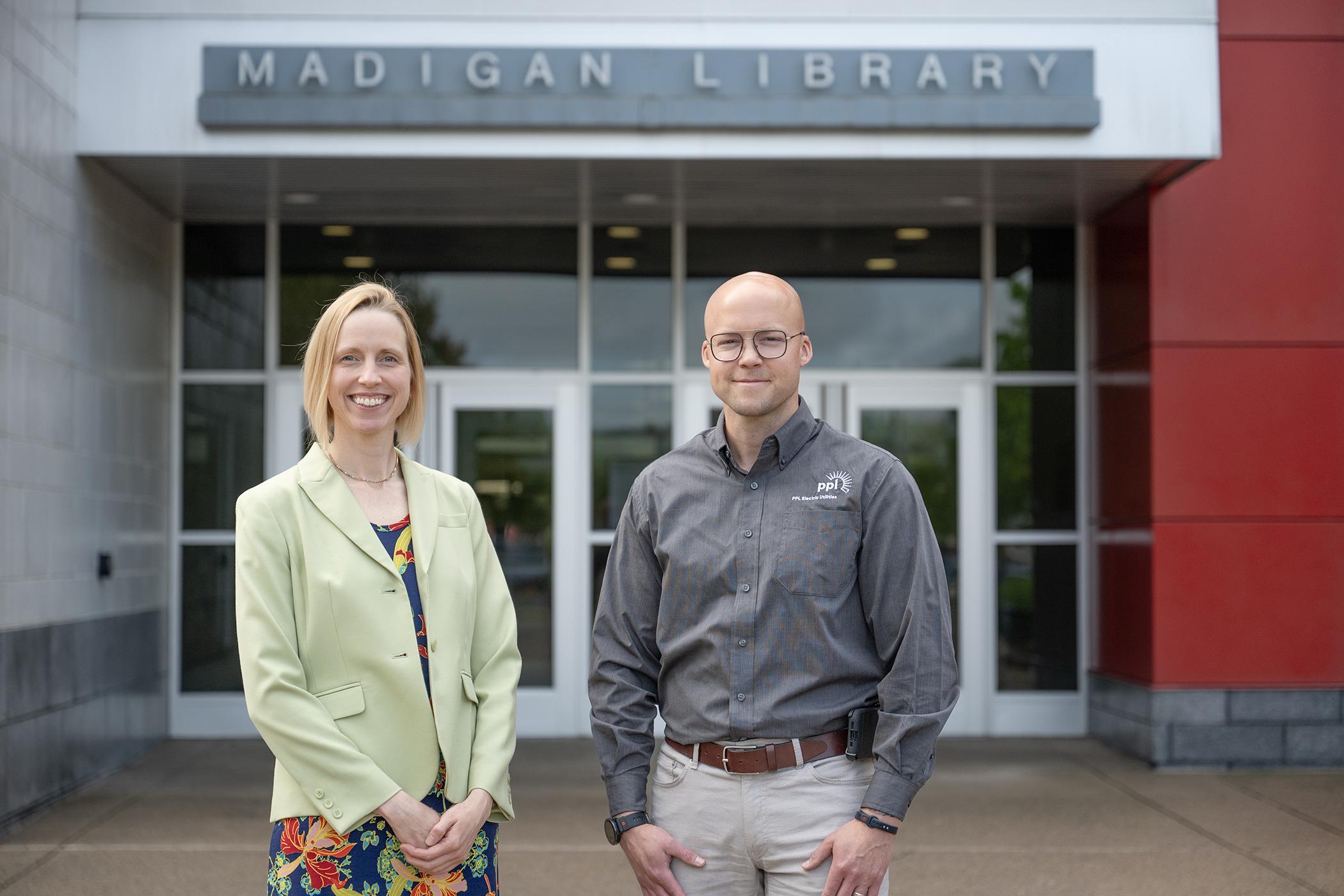 PPL Electric Utilities has donated $8,000 through the Educational Improvement Tax Credit Program to support dual enrollment efforts at Pennsylvania College of Technology. Penn College Dual Enrollment enables academically qualified high school and career and technology education students to take courses tuition-free during their regular school day. From left are Elizabeth A. Biddle, senior director of grant management at Penn College, and Jonah G. Howe, PPL regional affairs director.