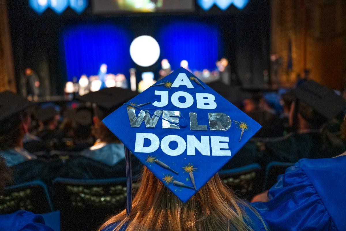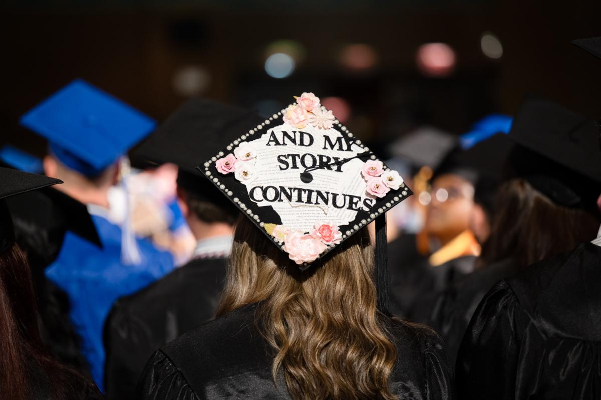 A rhinestone Wildcat paw tops the mortarboard of Savannah Greene, business management.