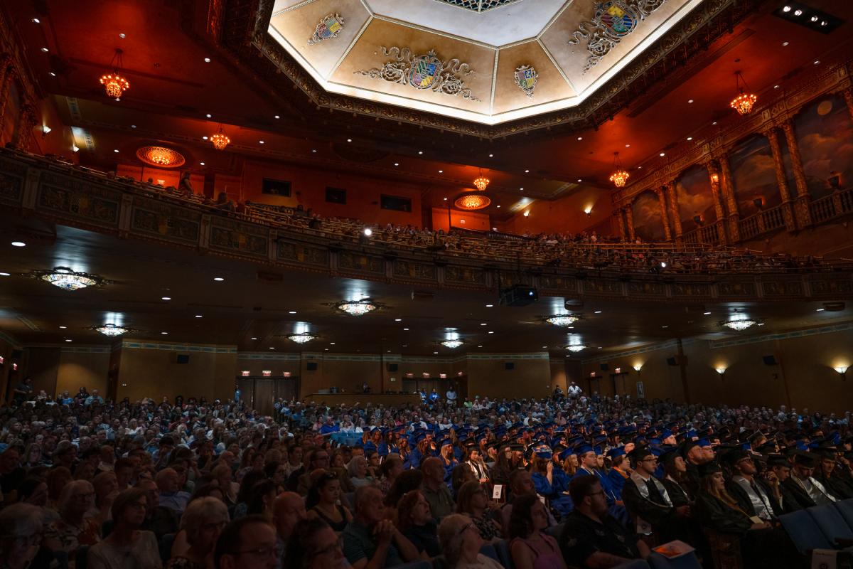 James T. McCollum was an audience favorite on the "big screen," as the camera panned the crowd of new alumni. He took home degrees in architecture & sustainable design and architecture.