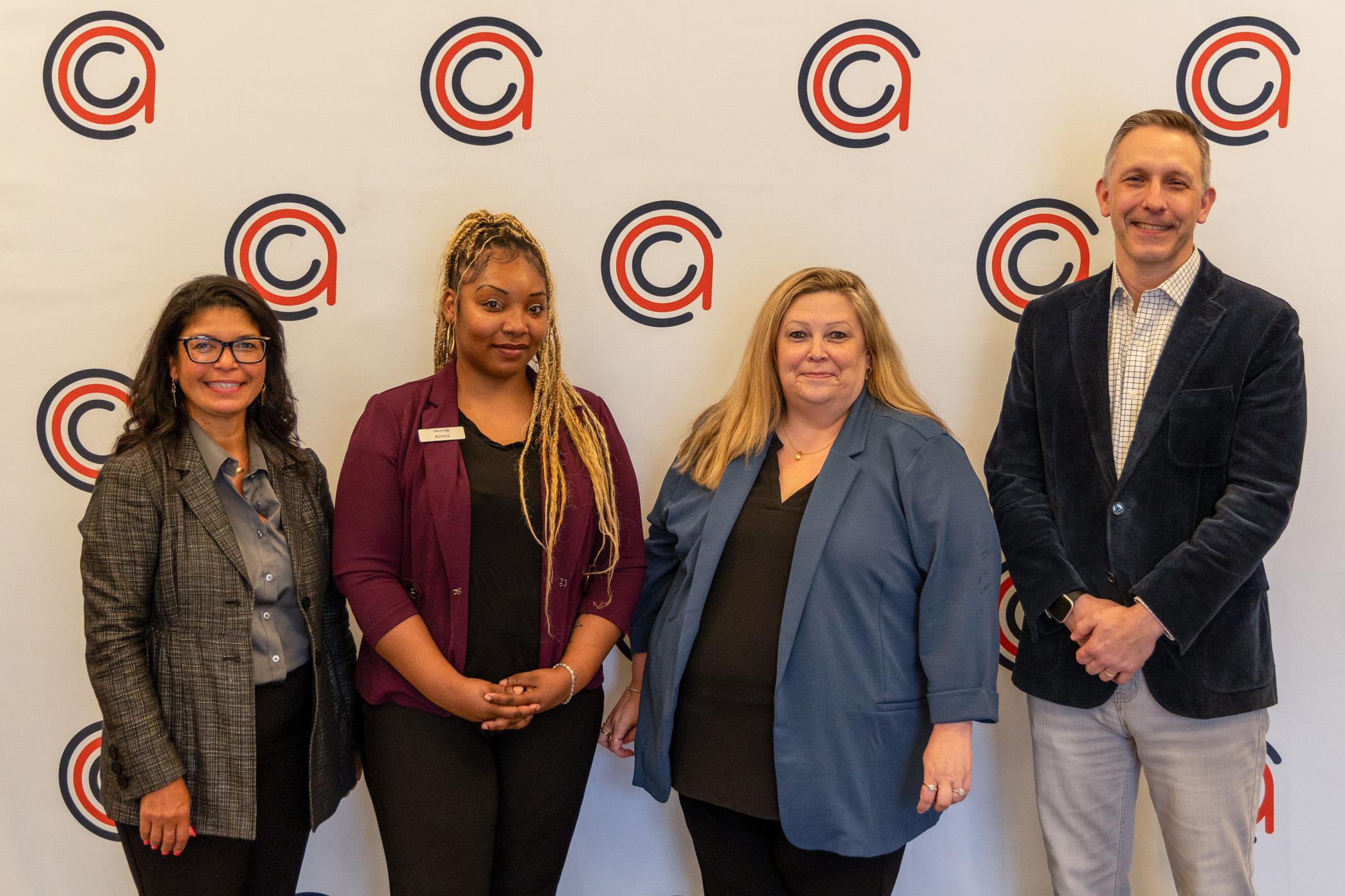 Representatives gather to observe Truist's donation to the Community Arts Center (from left): Ana Gonzalez-White, college relations officer for CAC development; Amira Hanifah, branch leader, Truist; Stacey Branning, vice president/branch leader, Truist; Jim Dougherty, CAC executive director.
