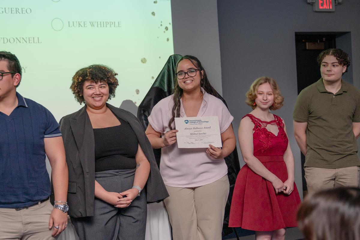 Awards were given as follows: Office Assistant of the Year, Nando Ubaldini; Educational Program of the Year to Clinton/Delaware/Juniata staff for “Safe and Saucy”; Social Program of the Year to Valentino Barillaro, Dimitri Maroulis and John Schwear III, for “Rowdy Raffle”; Always Hallways, Mildred Sanchez; Rising Star of the Year, Antonio Zampini; Resident Assistant of the Year, Carter Flory; and Tracy Garis Leadership Award, Cici Miller.