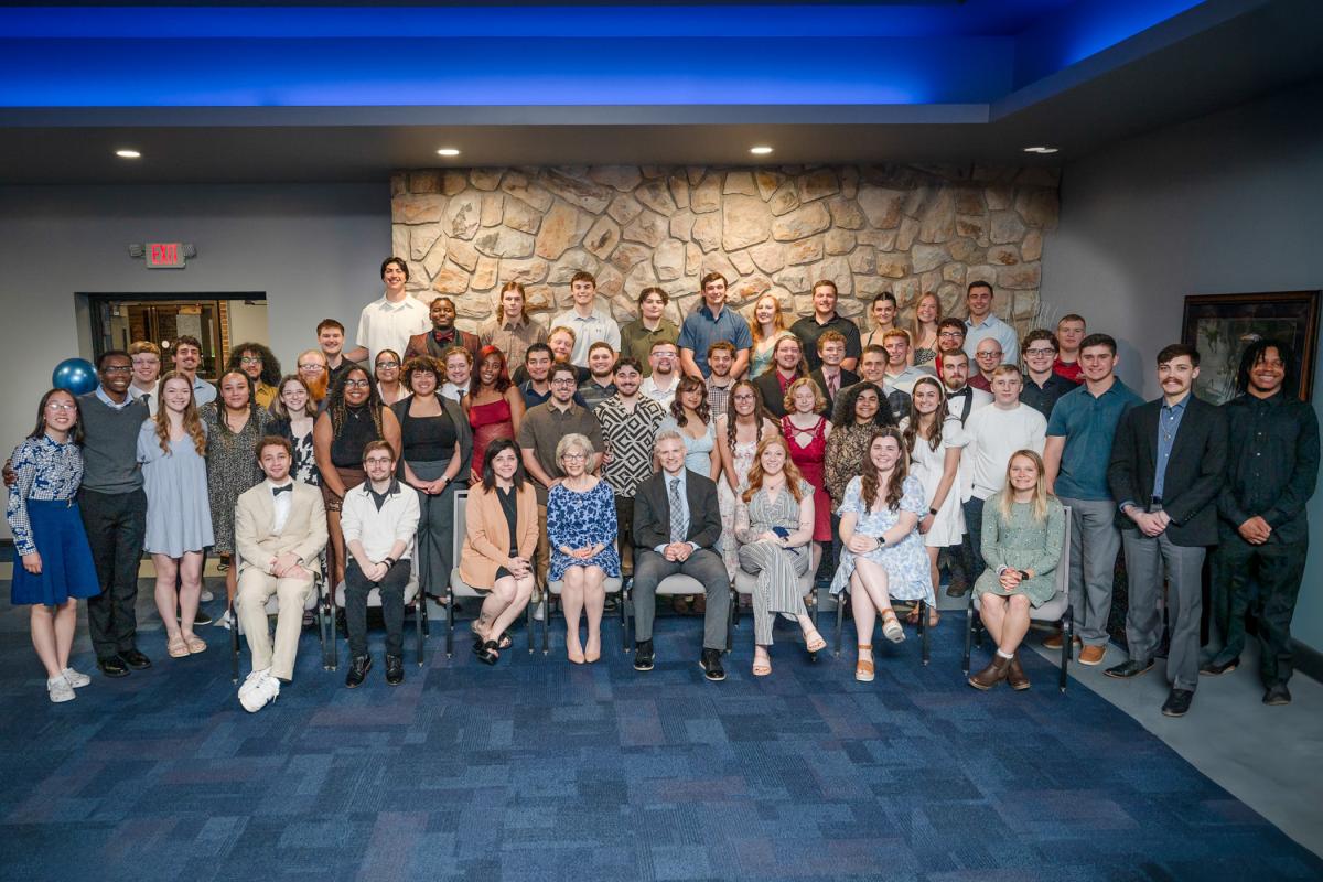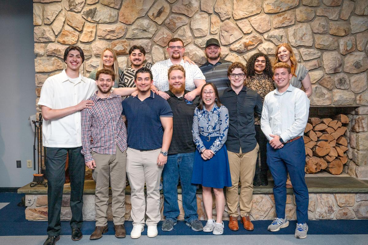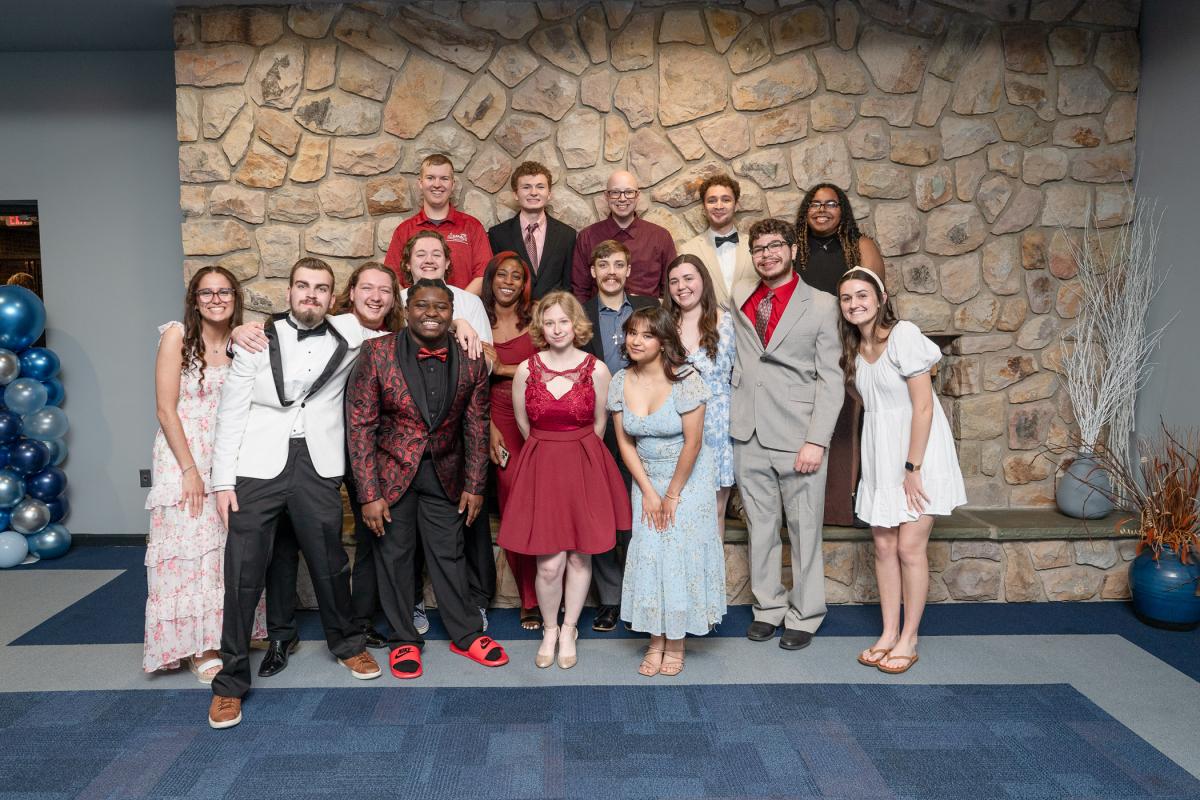 That's a wrap! Penn College's Residence Life staff, including resident assistants, gather for a group photo at their end-of-year banquet in the Thompson Professional Development Center.