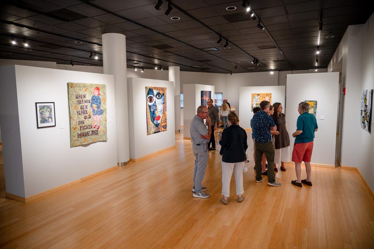 About 100 visitors savored an afternoon of artistic exchange in The Gallery at Penn College, as the summer exhibition reception celebrated “Five Artists: Explorations and Conversation.”