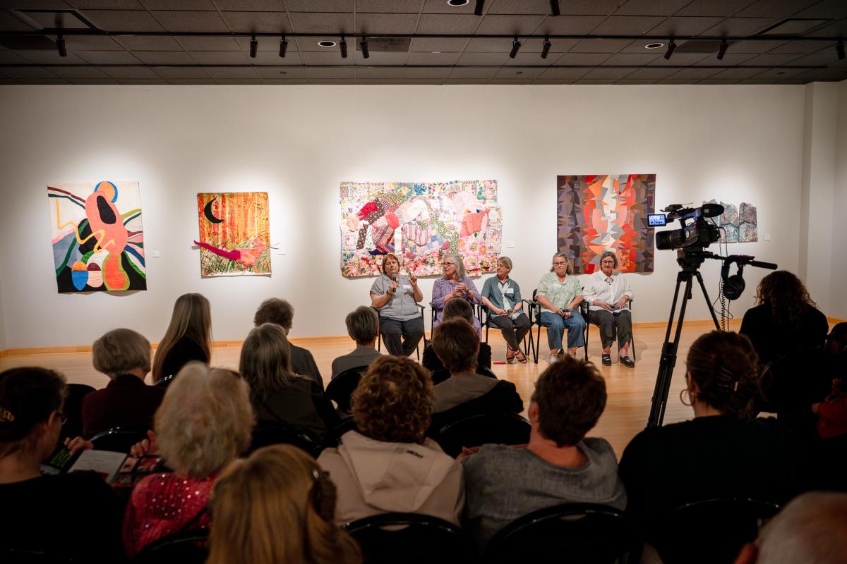 The fiber artists discuss their work (from left): Meredith Eachus Armstrong, Jean E. Downing, Elizabeth Z. Bennett, Peggy Blei Hracho and Cecilia J. Rusnak.