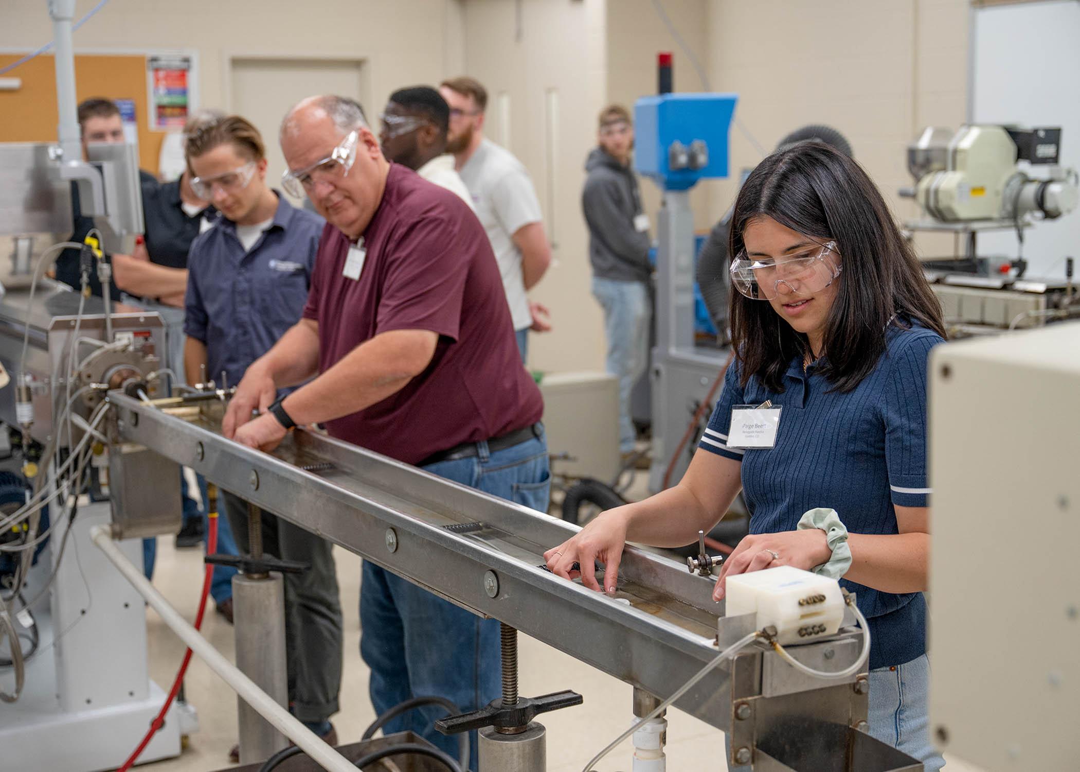 Sponsored by West Pharmaceutical Services Inc., a Penn College Corporate Tomorrow Maker, the three-day course covered extrusion principles and provided hands-on work with industry-standard equipment, including a single-screw extruder, twin-screw extruder, blown film line, injection molder, melt indexer and tensile tester.