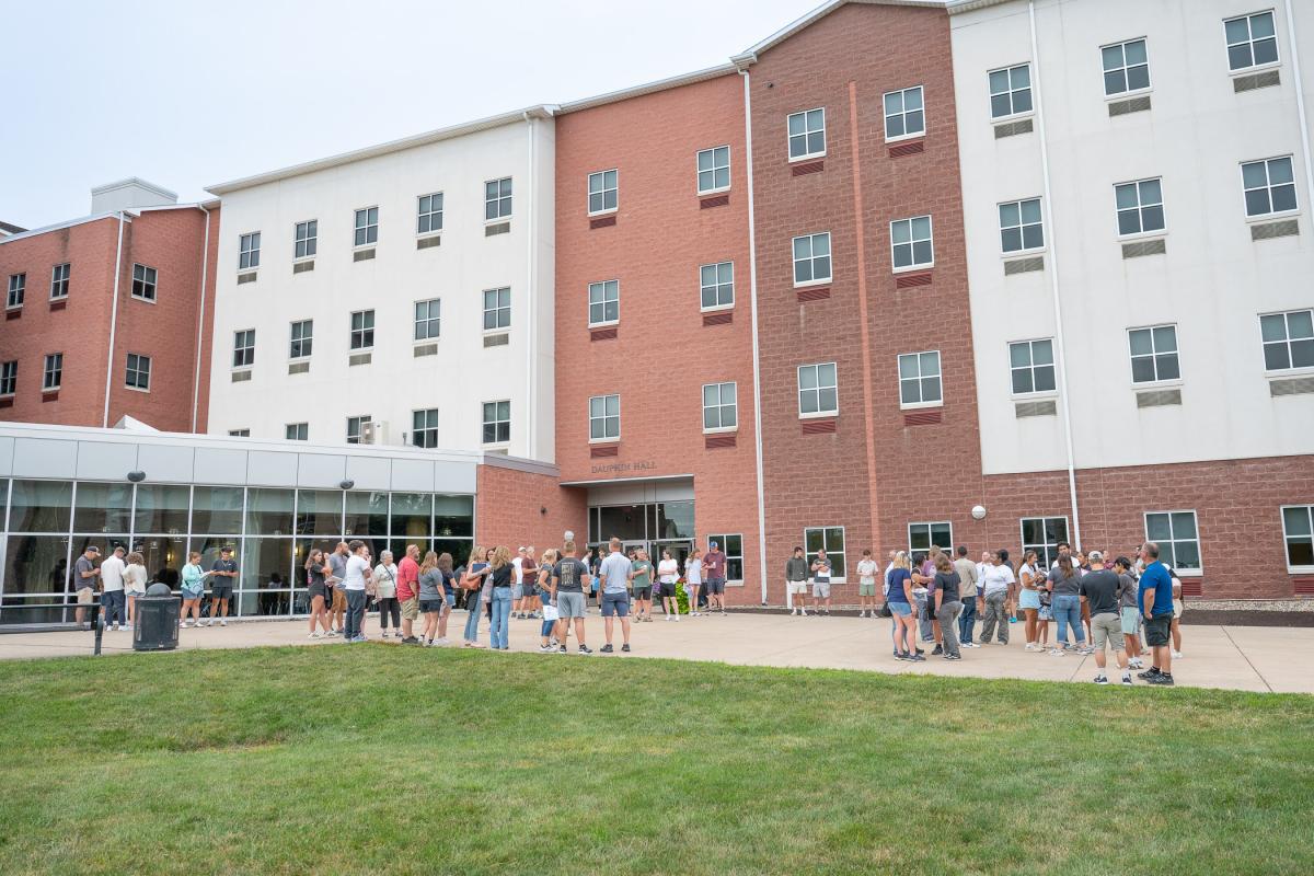 Groups gather at Rose Street Commons to get a feel for campus living.