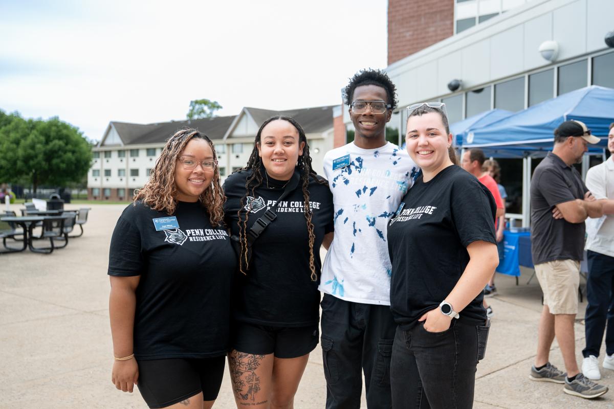 Residence Life staff (from left) Hope Wilson, Olivia Magann, Samir K. Pringle and Sophia G. Wiest are on hand to help housing tour guests. Wilson, Magann and Wiest are residence life coordinators. Pringle is a summer camps and conference assistant, as well as a business administration student.