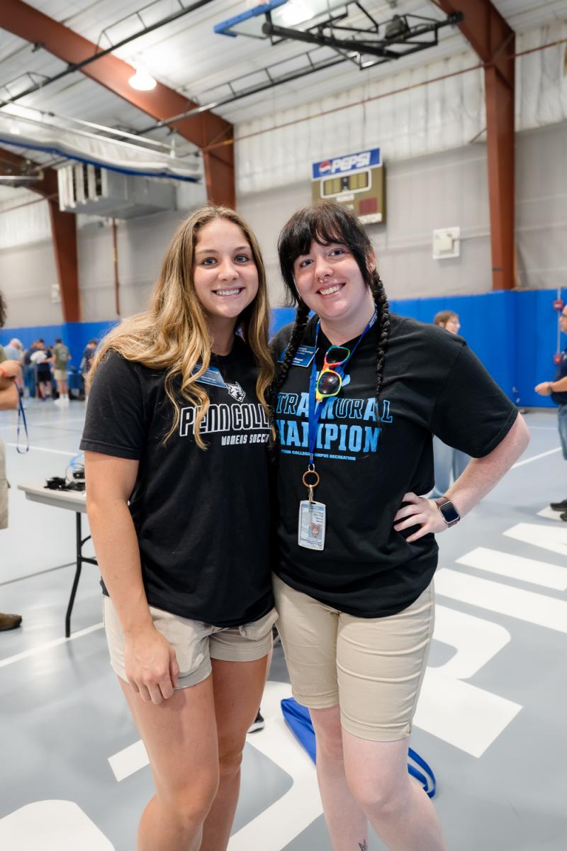 Orientation leaders Sierra N. Klinger (left), of Klingerstown, and Karissa M. Prosser, of Mount Jewett, stand ready to welcome guests. Both are business administration students.