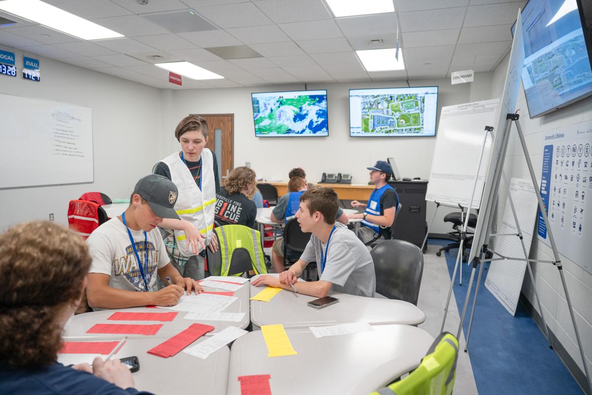 Campers practice the skills of emergency management during the Wildcat Disaster Management Academy.