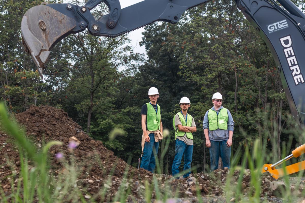 At the Heavy Equipment Operations Training Site, participants in the Diesel Truck & Heavy Equipment camp observe a peer’s digging work. (Photo by Rachel Heiser, graphic design and content manager for Groff Tractor & Equipment)