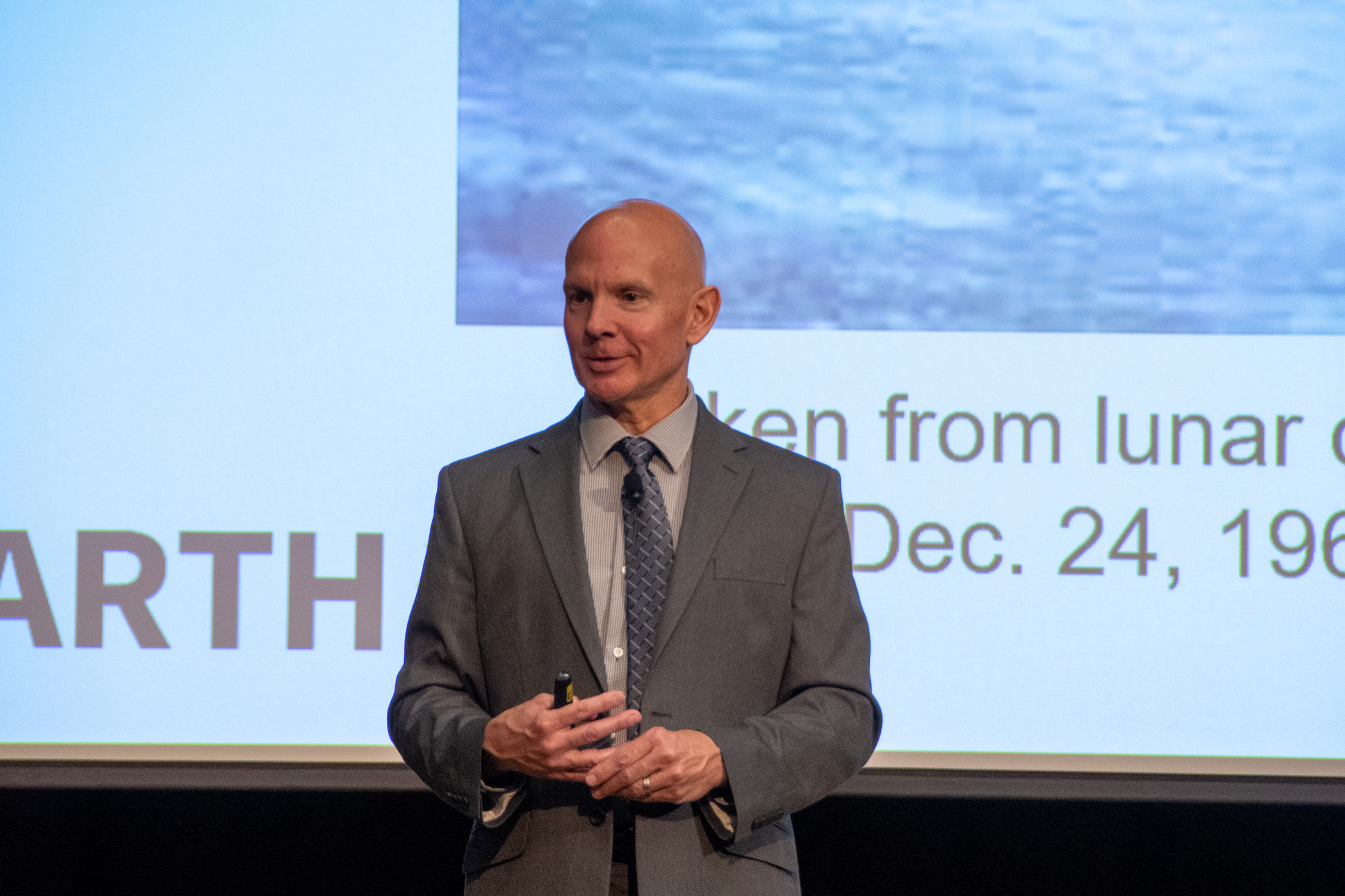 Mark Shiflett, director of the initiative, provided a presentation about EARTH to more than 100 students and faculty before the group toured the college’s facilities. Shiflett is a distinguished foundation professor in the School of Engineering at the University of Kansas. During his 28-year career with DuPont Co., he developed new refrigerants and is an inventor on 40 U.S. patents. He received the American Institute of Chemical Engineers Institute award for Industrial Research in 2016 for the development of non-ozone-depleting refrigerants that have led to the healing of the Earth’s ozone layer.