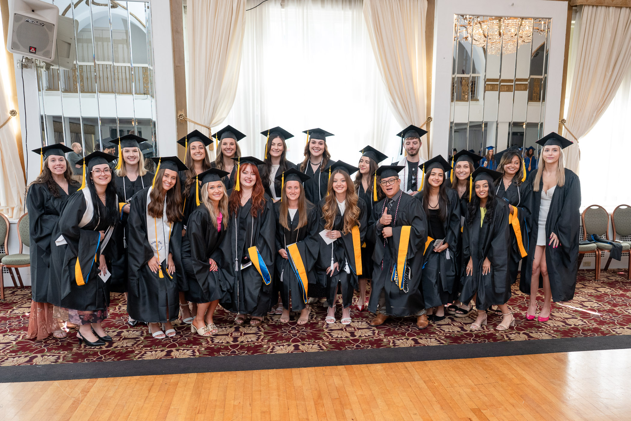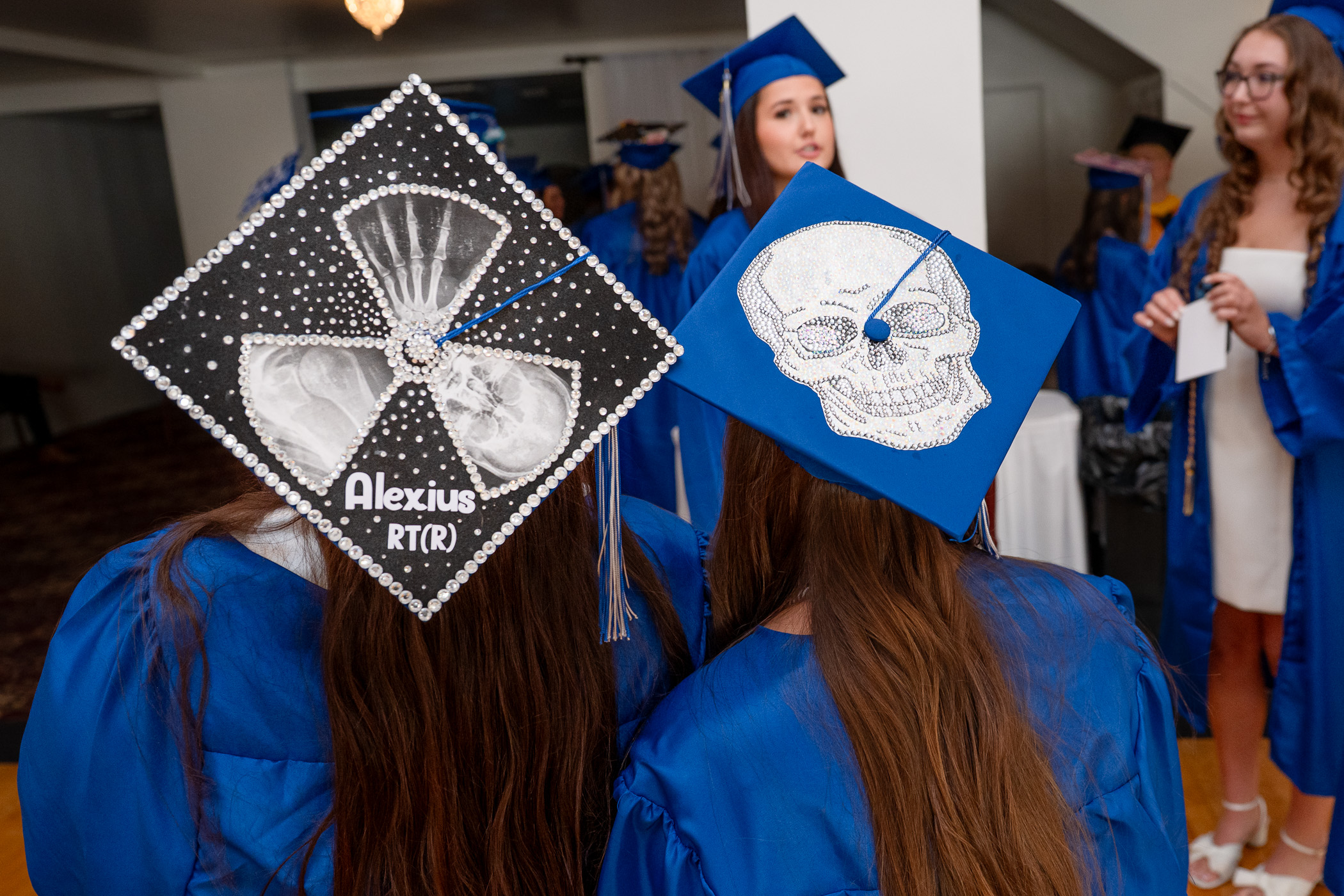 Physical therapist assistant students gather in a Genetti Hotel ballroom for "lineup" before the graduates walk to the Journey Bank Community Arts Center next door.