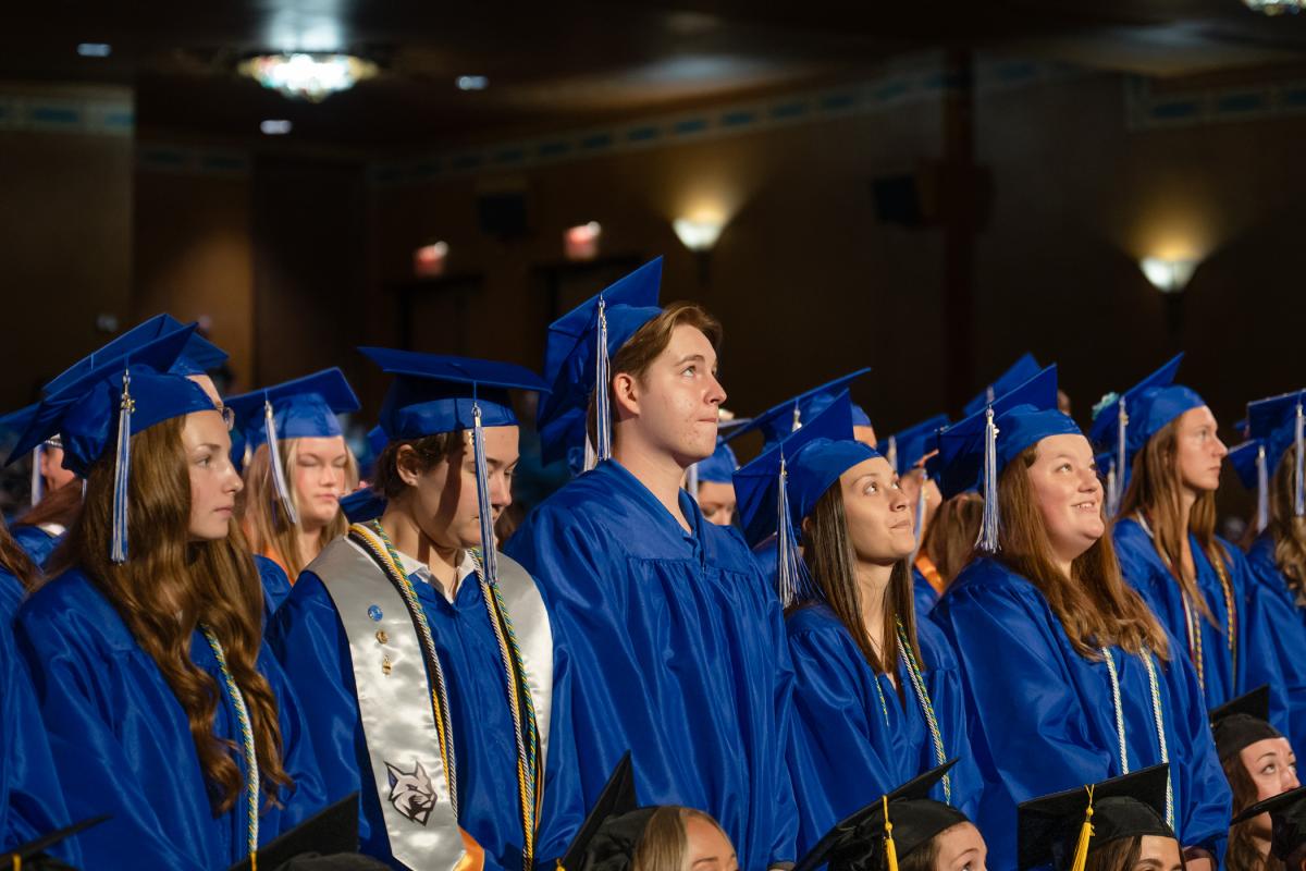 Physical therapist assistant graduates stand for the conferral of their associate degrees.