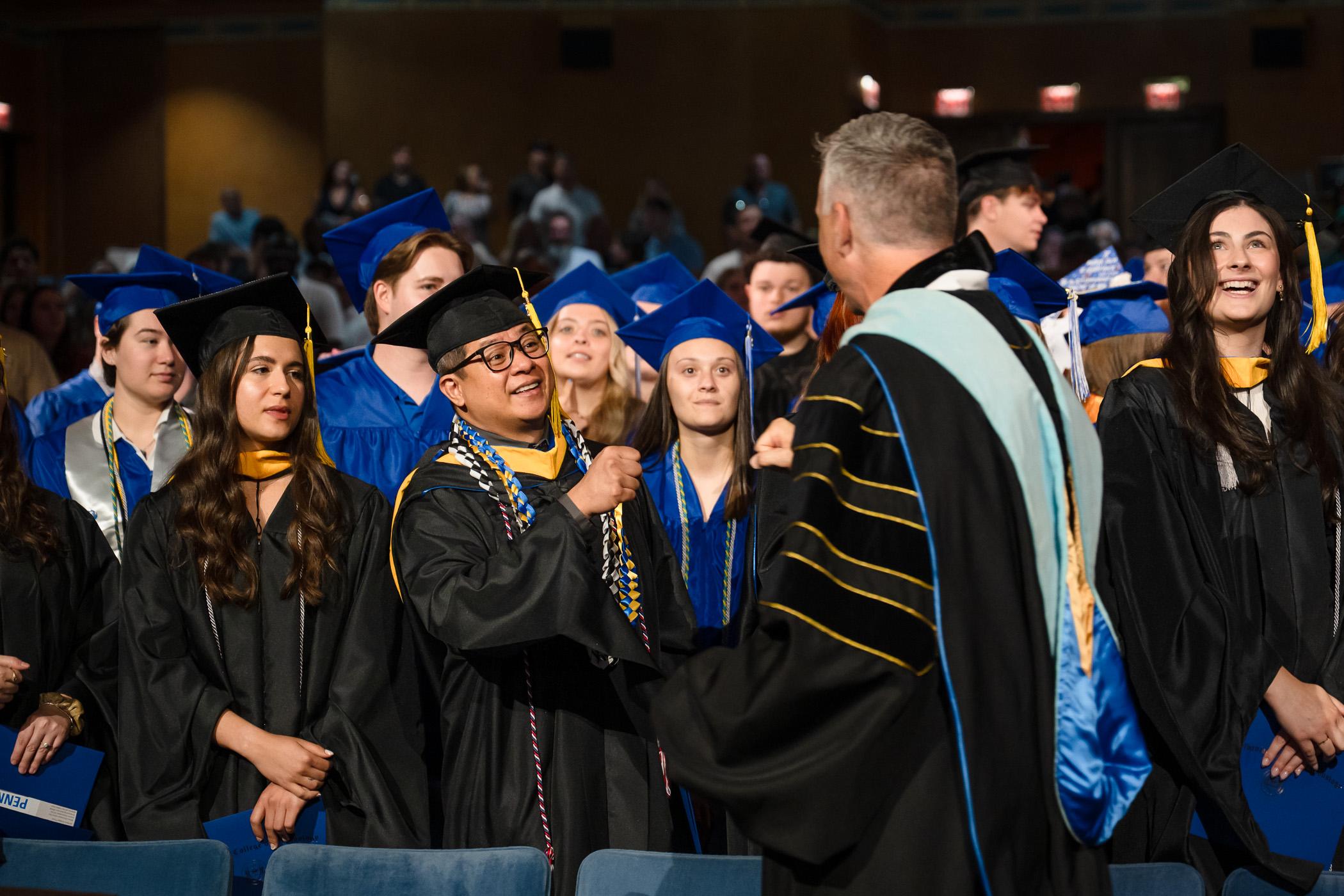 “Here you are,” physician assistant studies graduate Whendy Marshall-Magallon, of York, tells her fellow grads, “proof that hard work, sacrifice and determination can take you farther than you ever imagined.”