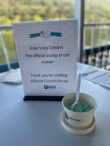The hourlong Hiawatha Paddlewheel Riverboat cruise featured a collaboration with another local favorite: Eder’s Ice Cream, which crafted a Wildcat Crunch flavor. And, perhaps the most favored, the Wildcat came by to greet the guests and wish them a “bon voyage.”