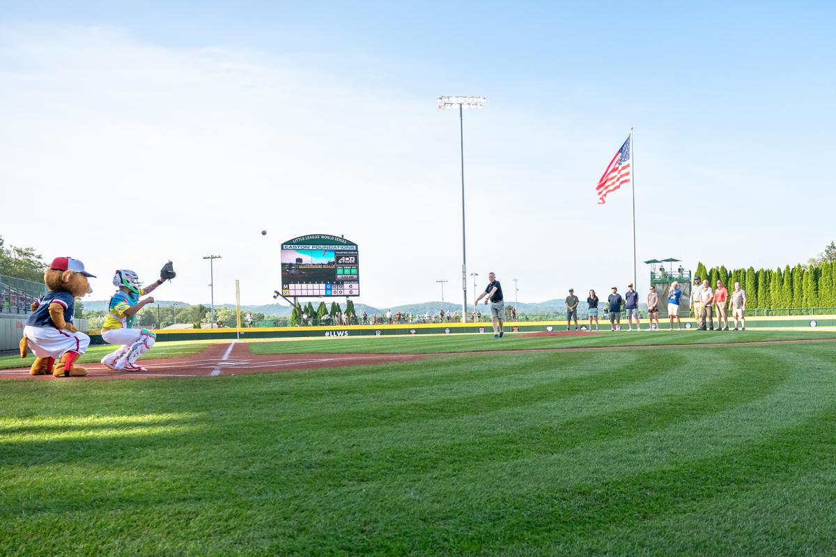The contingent is recognized on the field at Little League International’s Volunteer Stadium.