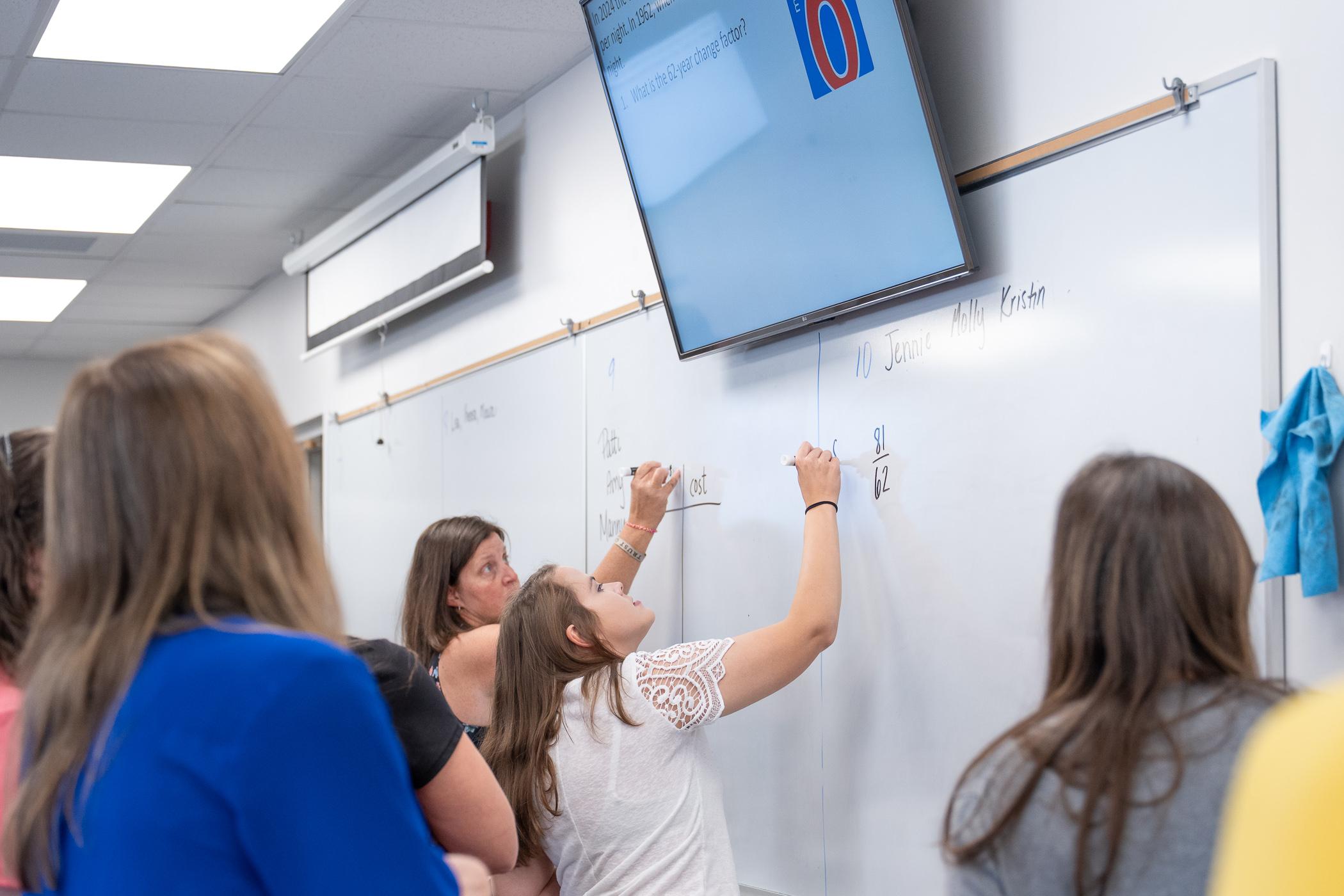 Thirty-one math professionals were guided to incorporate student-centered active learning strategies into math courses. The group was made up of full-time instructors, staff members and adjunct instructors from Penn College, and high school teachers from across the region, three of whom teach Penn College Dual Enrollment courses.