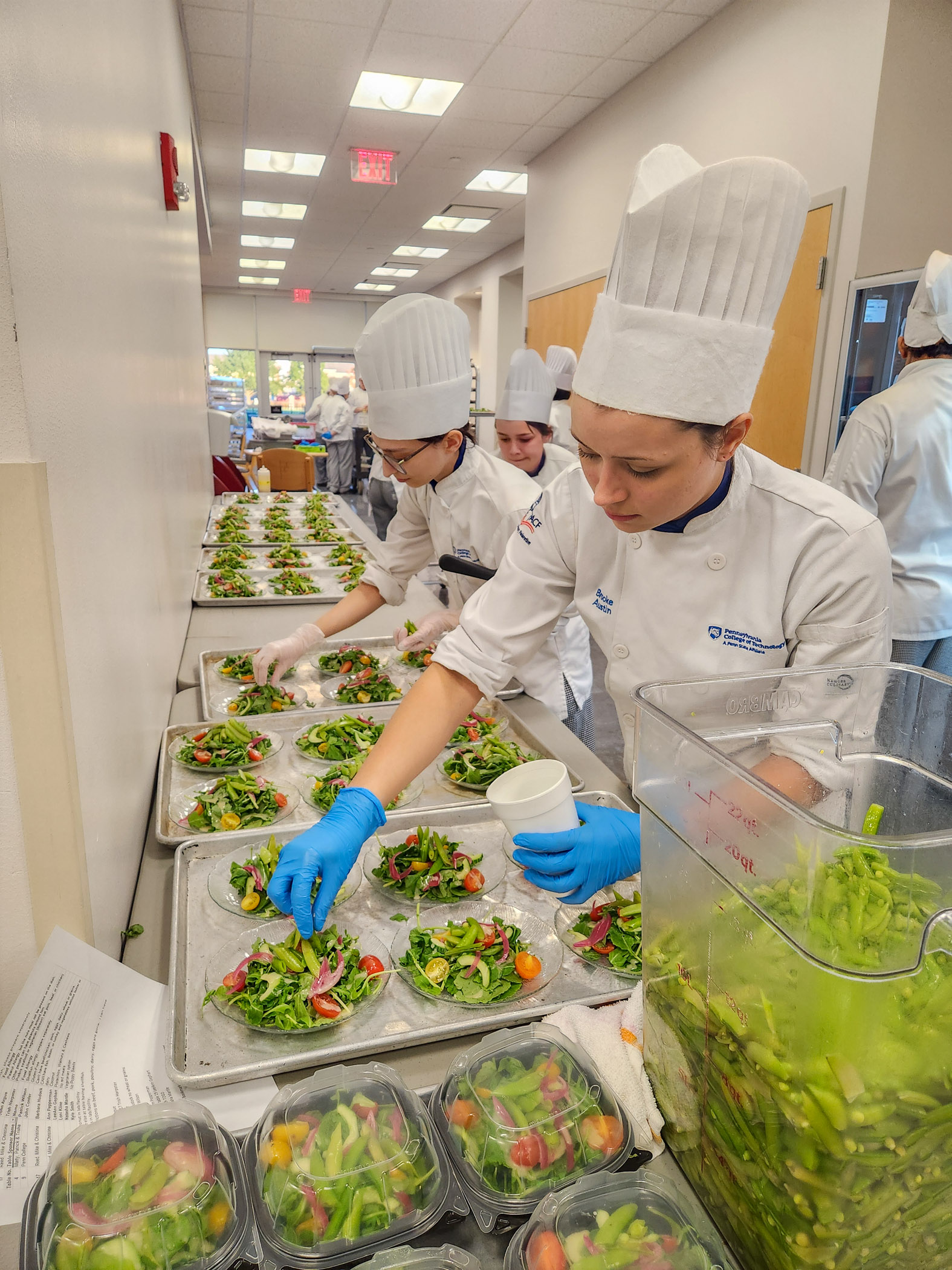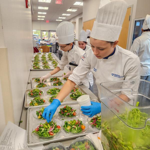 Dinner was catered by Le Jeune Chef Restaurant, a live-learning lab for students in Penn College’s hospitality program. The event provided hands-on experience for students in the Beverage Management & Service Applications and Foundations of Service Applications for the Hospitality Industry classes. Students in the Grand Pastry Display course were responsible for the evening’s dessert and bread service, including menu writing, ingredient ordering, planning and production, and service at the tables.