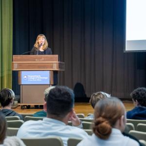 The day’s activities included a workshop on leadership tracking by Mary Anslinger, vice president of corporate human resources for Shaner Hotels; a workshop on personality types and how it relates to leadership; a networking event with eight hospitality-industry employers; and lunch in the hospitality program’s Le Jeune Chef Restaurant. The visiting employers later participated in a recruitment event for Penn College students.