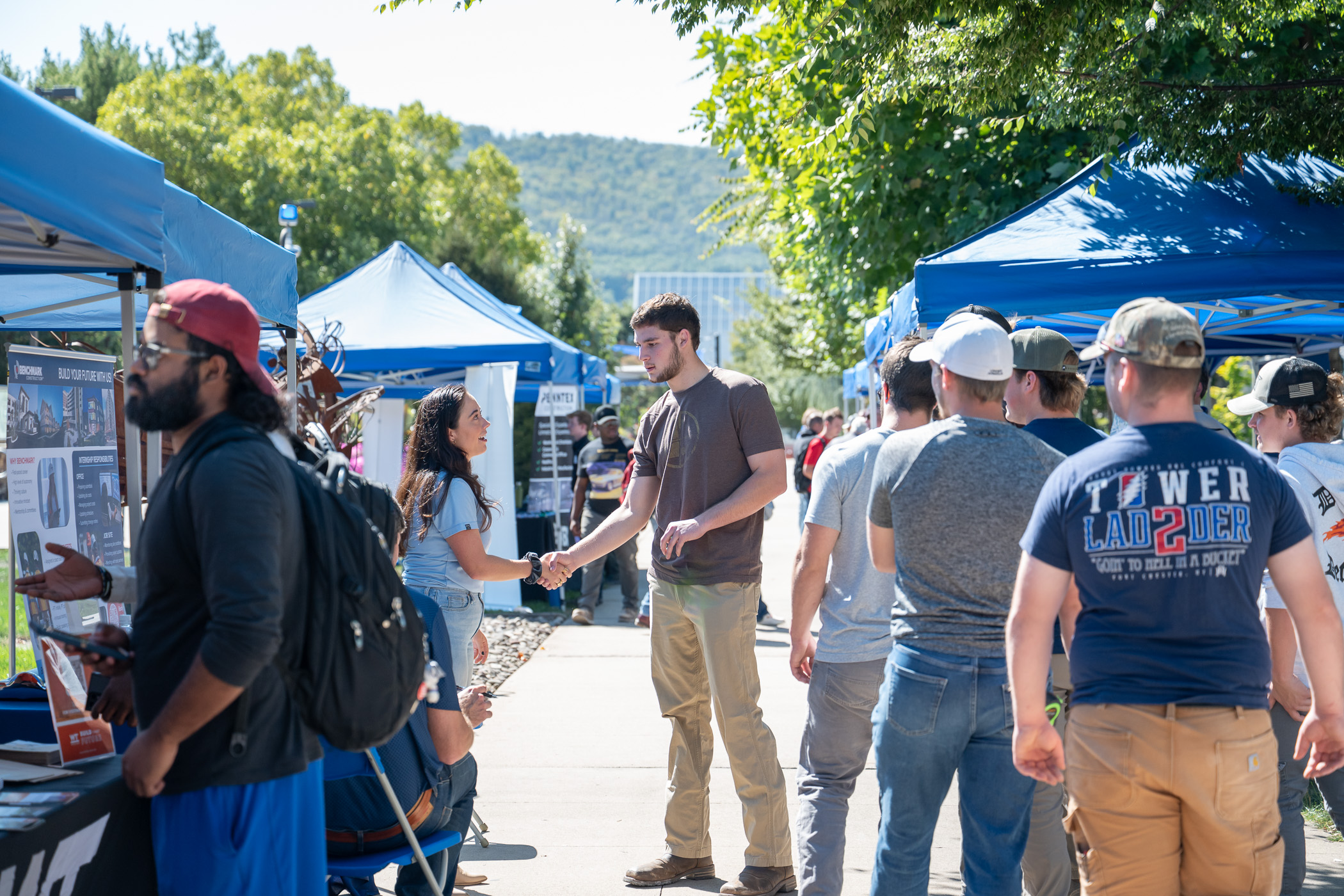 Employers line the campus mall to connect with students during a Sept. 11 Recruitment Day.