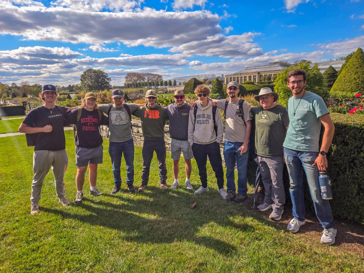 The Conservatory District at Longwood Gardens can be seen behind a group of Penn College landscape/plant production technology students.