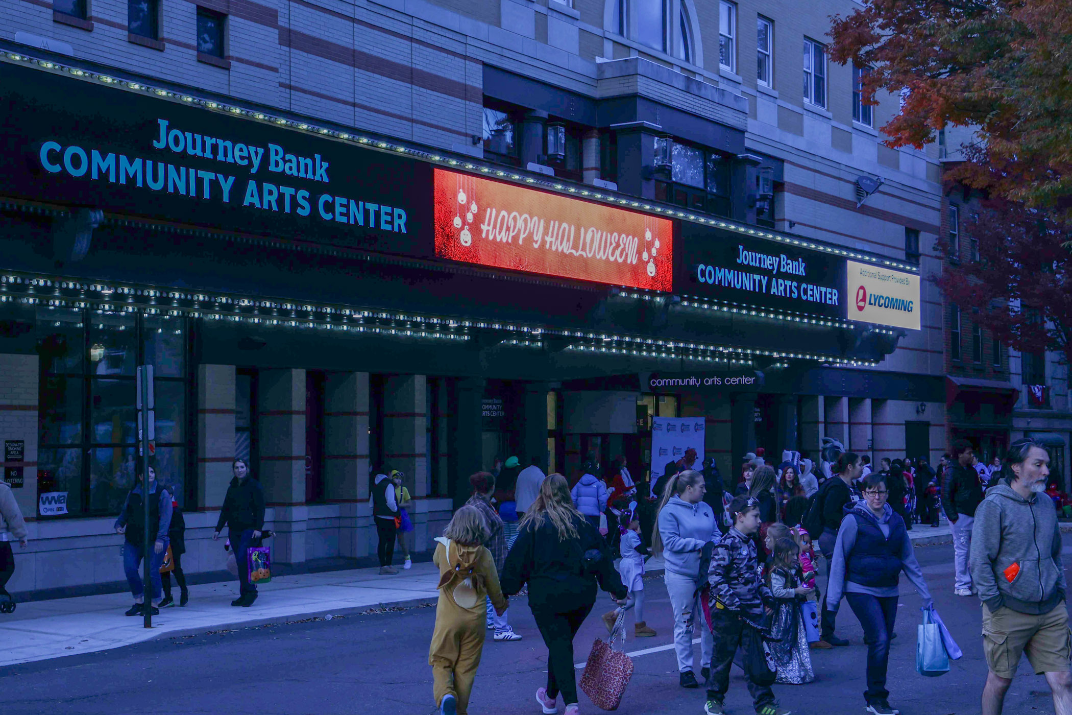 Eight brothers from Penn College’s Sigma Pi chapter lent a hand to the Journey Bank Community Arts Center staff in handing out candy to children who attended the community event, sponsored by the Williamsport Business Association, the city's Recreation Department and Horizon Federal Credit Union. They handed out over 1,300 pieces of candy, donated by both the Arts Center and the fraternity.