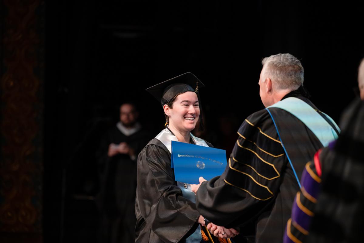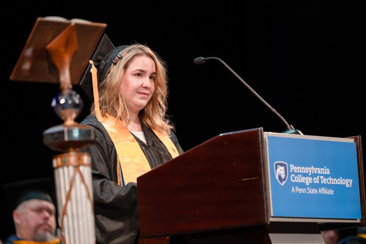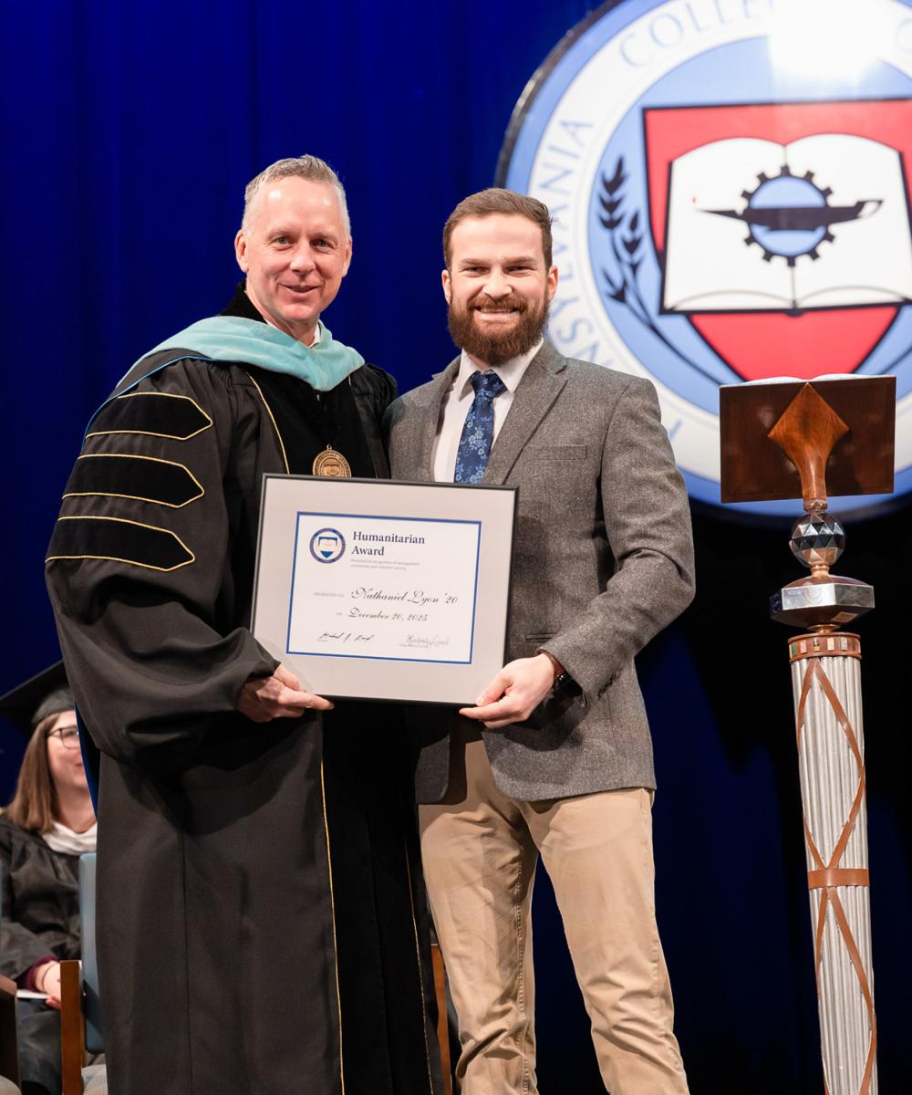 The student speaker was Hayden D. Lester, of Jersey Shore, who graduated with a bachelor’s degree in business administration. She also received the President’s Award, presented for leadership and service to the college. Also addressing the graduates were 2025 Veronica M. Muzic Master Teacher Award recipient Ed G. Owens, associate professor of mathematics, and Nate Lyon ’20, who received the college’s 2025 Alumni Humanitarian Award. Lyon, who holds a bachelor's degree in welding & fabrication engineering technology and an associate degree in welding technology, teaches at Milton Hershey School.