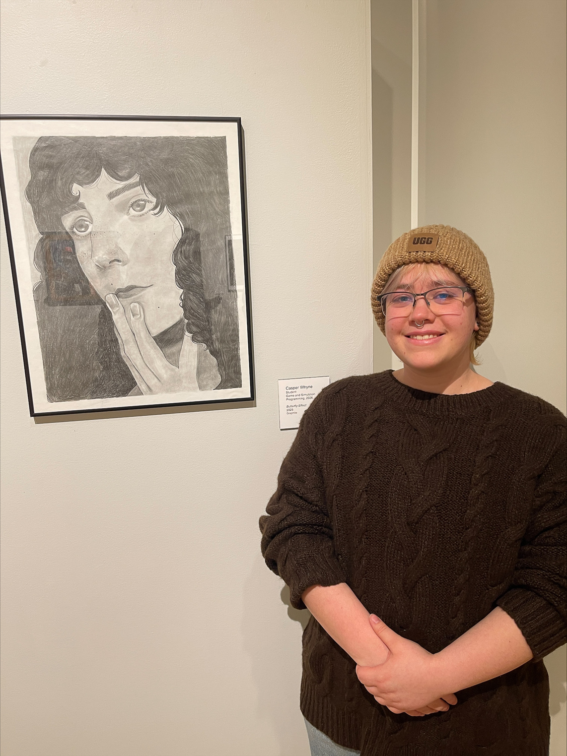 - Casper D. Whyne, of Sunbury, game and simulation programming major, for “Butterfly Effect,” graphite