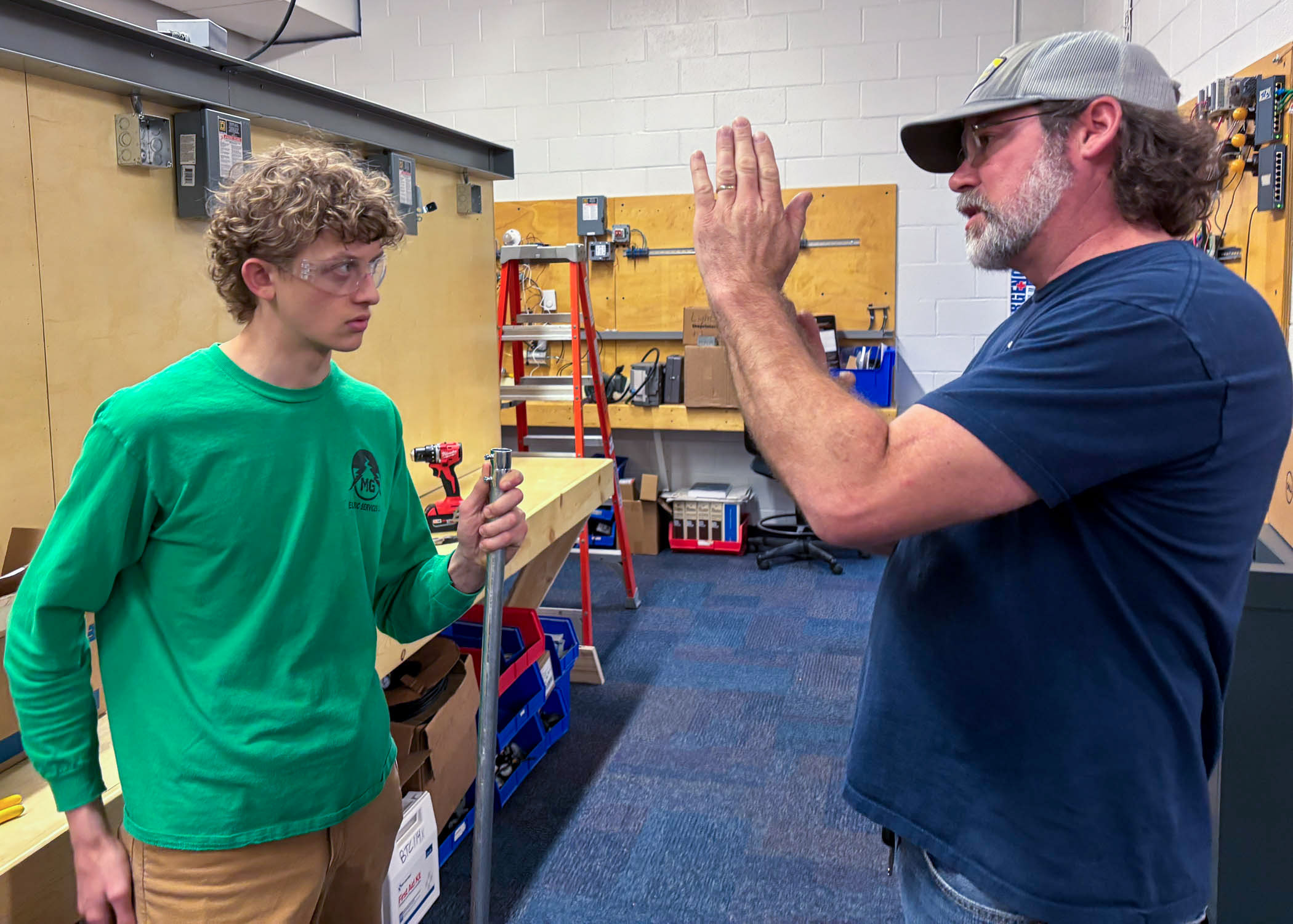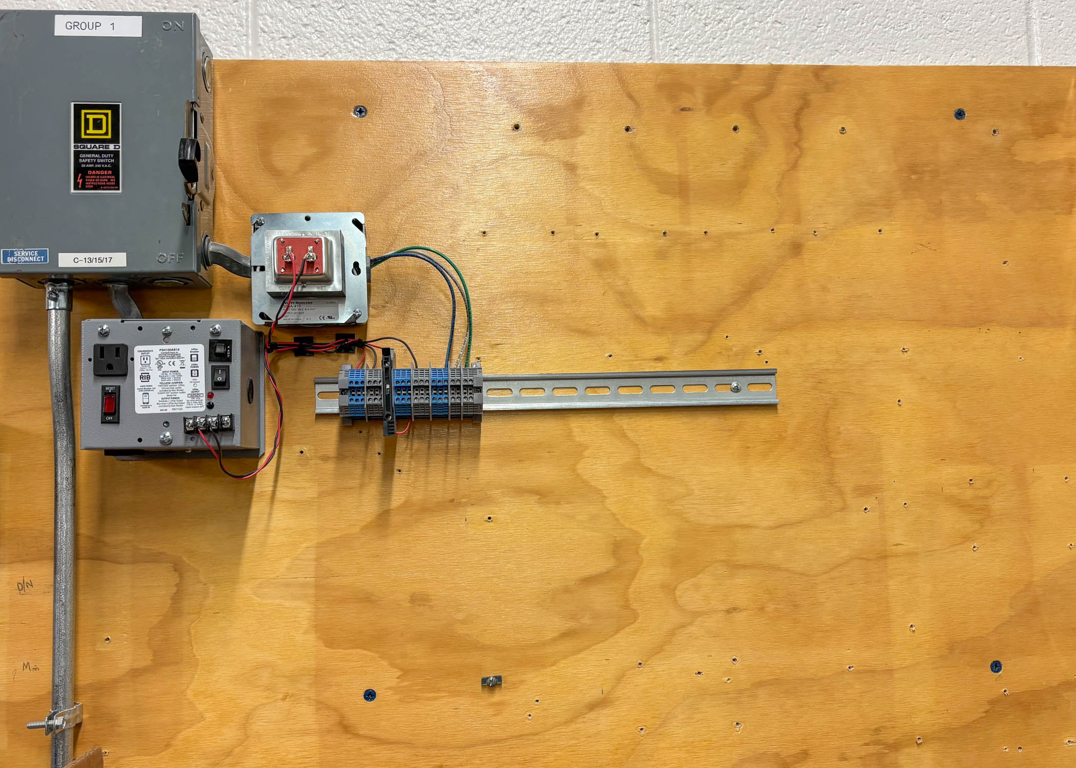 Electrical construction students install receptacles with disconnects.