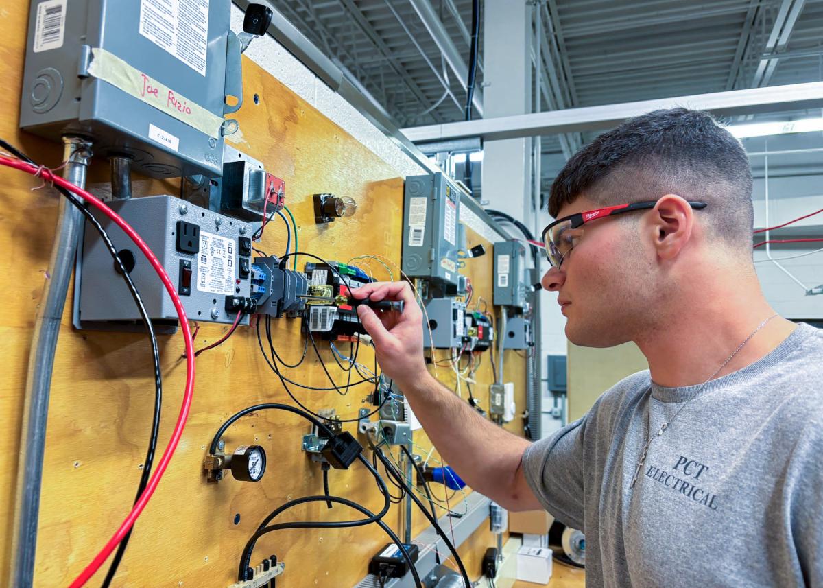 “It’s a great hands-on experience for the students,” said course instructor Darrin S. Morse, who recently had two sections of his class replace lighting at the Williamsport YMCA. “The work in the lab has been more technical than what we did at the Y. We’ve been doing more receptacles, a lot more terminations. This work has been more intricate.”