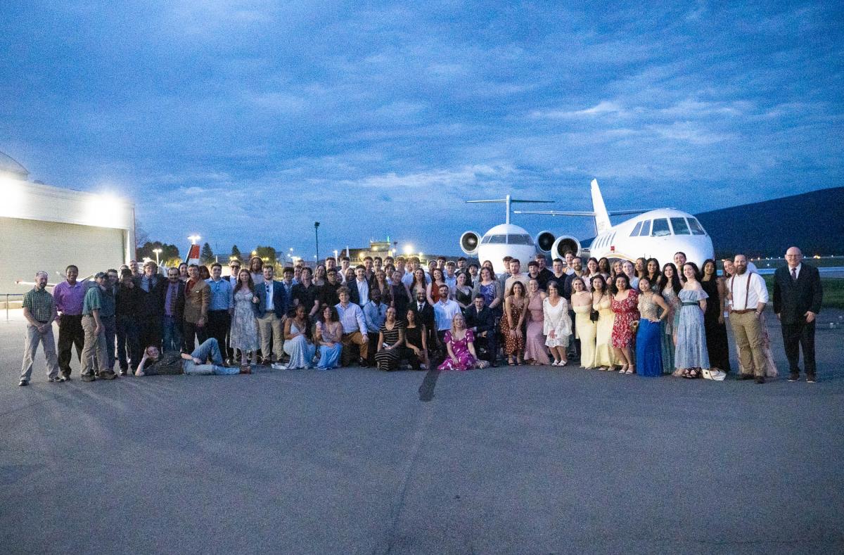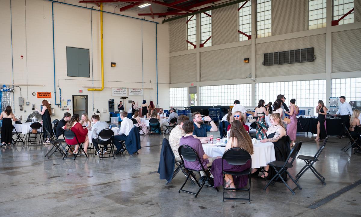 Held in and outside the Aviation Center’s hangar, with music provided by Sigma Pi, the semiformal event provided free food, dancing, cornhole, and a raffle for those who brought a donation for The Cupboard, the college’s food pantry for students.