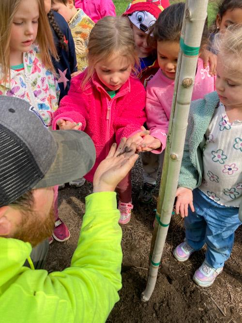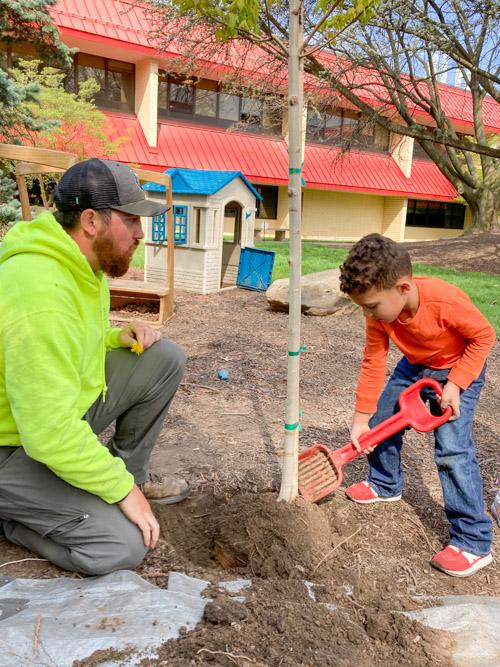 Myers also involved children from all the classrooms in planting a tree in the center’s courtyard.