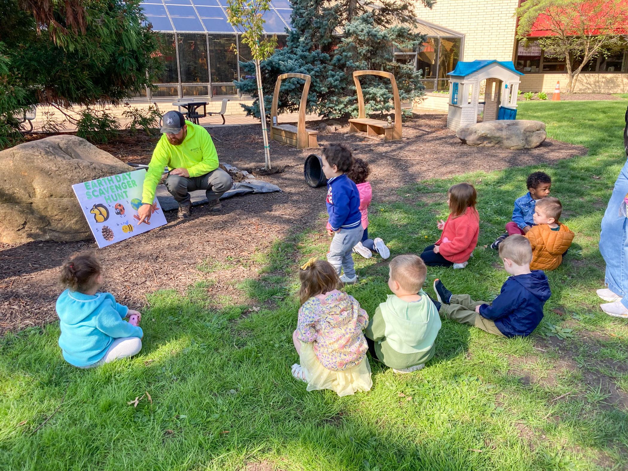 To celebrate Earth Day 2026, the Dunham Children’s Learning Center had a special guest visitor and activity planner. Ben Myers, a Penn College horticulturalist and dad of Izabelle, of the Bunnies classroom, had a scavenger hunt for the toddlers. Children loved finding the “Earth” Myers hid, along with ladybugs, pine cones and other objects.