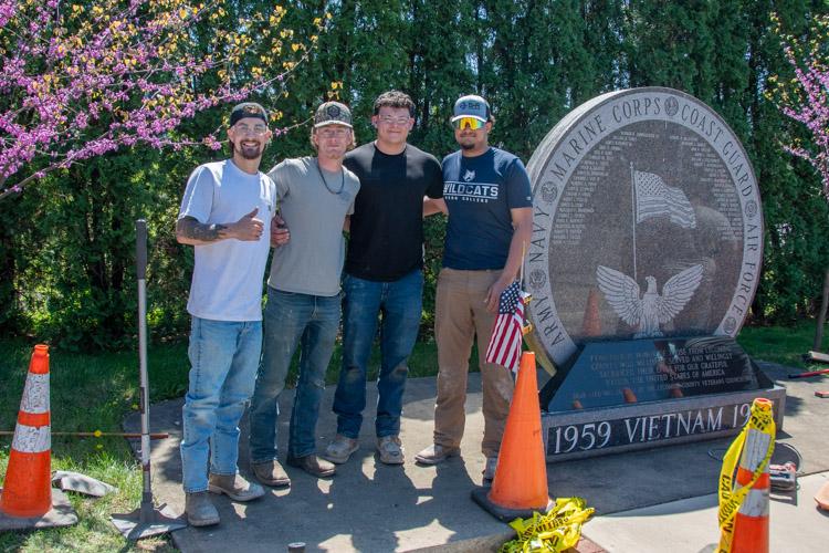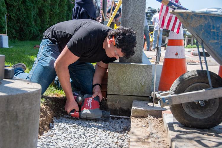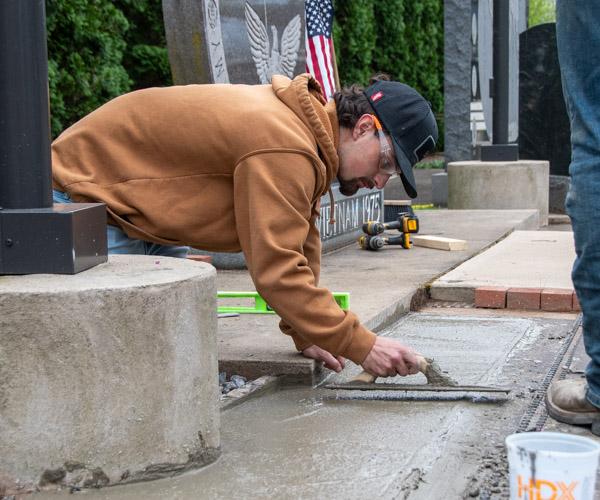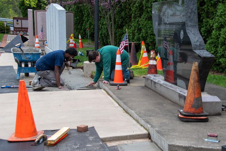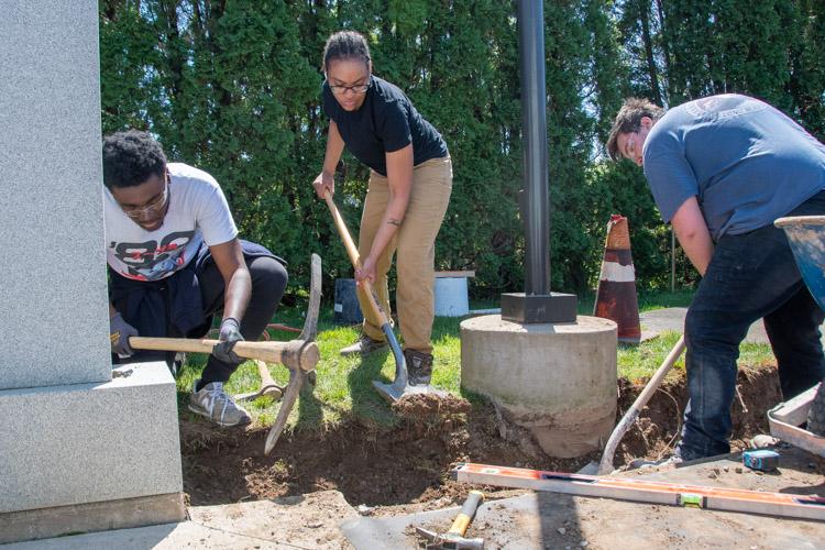 To close out the semester, DiBucci’s class then turned its attention to the Lycoming County Veterans Memorial Park, where the class dug out several grass areas between the park’s monuments and commemorative bricks, and poured concrete. Additional bricks will eventually be laid on top of their work.