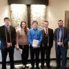 Delta Mu Delta inductees, from left: Shane M. Beckman, Megan N. Whiteman, Stephen B. Wozniak, Zachary J. Buterbaugh and Cory L. Buckles. The School of Business & Hospitality inducted five students Friday into the Penn College chapter of the Delta Mu Delta International Honor Society in Business. Those inducted during a ceremony in Le Jeune Chef Restaurant were Shane M.