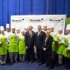 The Parkes Automotive Technology Center is transformed into a banquet space complete with autumnal and automotive accents. A mix of Le Jeune Chef Restaurant waitstaff and hospitality management students stand ready to serve authentic Oktoberfest fare. From left: Amber F. Buck, Jennifer A. Moyer, Denis V. Younken, Crystal L. Harker, Noeiris Pliego and Taylor M. Barrett.