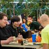 Simon P. Couls Jr., information assurance and cyber security, exhibits excitement (and refreshment) in the line. Jack M. Banker, electronics and computer engineering technology, motions wildly as he fights enemies in Superhot VR. Industrial design student Tyler M. Schmill laughs heartily while slashing through Fruit Ninja VR.