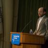 The keynote speaker engages the PDC crowd. The multimedia program incorporates other people's insights as a tool for self-reflection, such as video of Charles Rangel, who left office last month after more than 45 years as a congressman from New York.