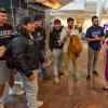 A cheerful woodland creature – complete with small birds, frogs and turtles – was crafted by Sydney M. Telesky, a human services & restorative justice student from Milton. Library wall reflects cross-cultural exploration. Four horns adorn this visually striking creation of Cameron E. Bracey, a construction management student from Minersville.